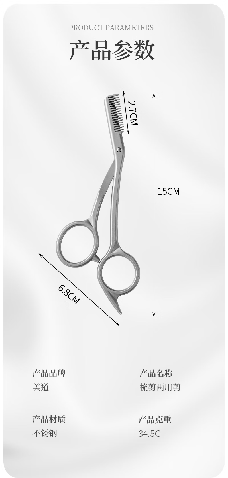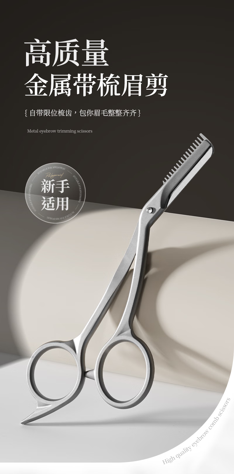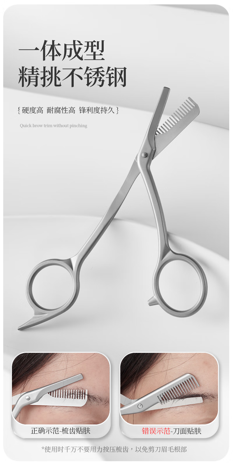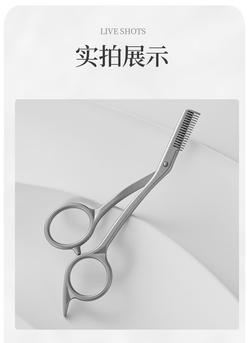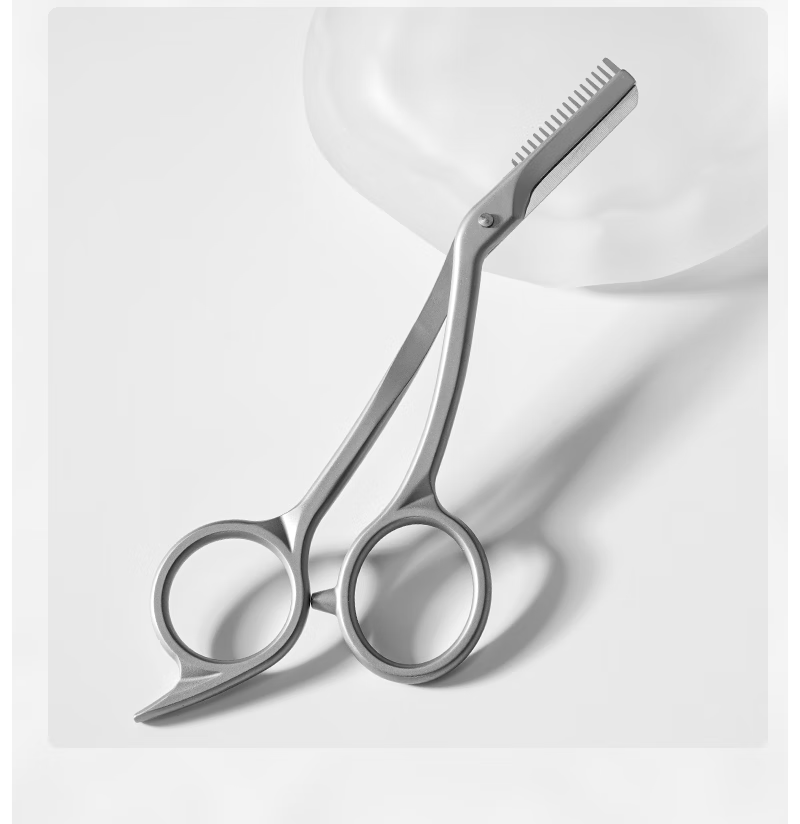 美道带梳修眉剪刀子鼻毛剪男女专用修眉刀全不锈钢剪子燕尾化妆剪 美道金属一体带梳眉剪 1把