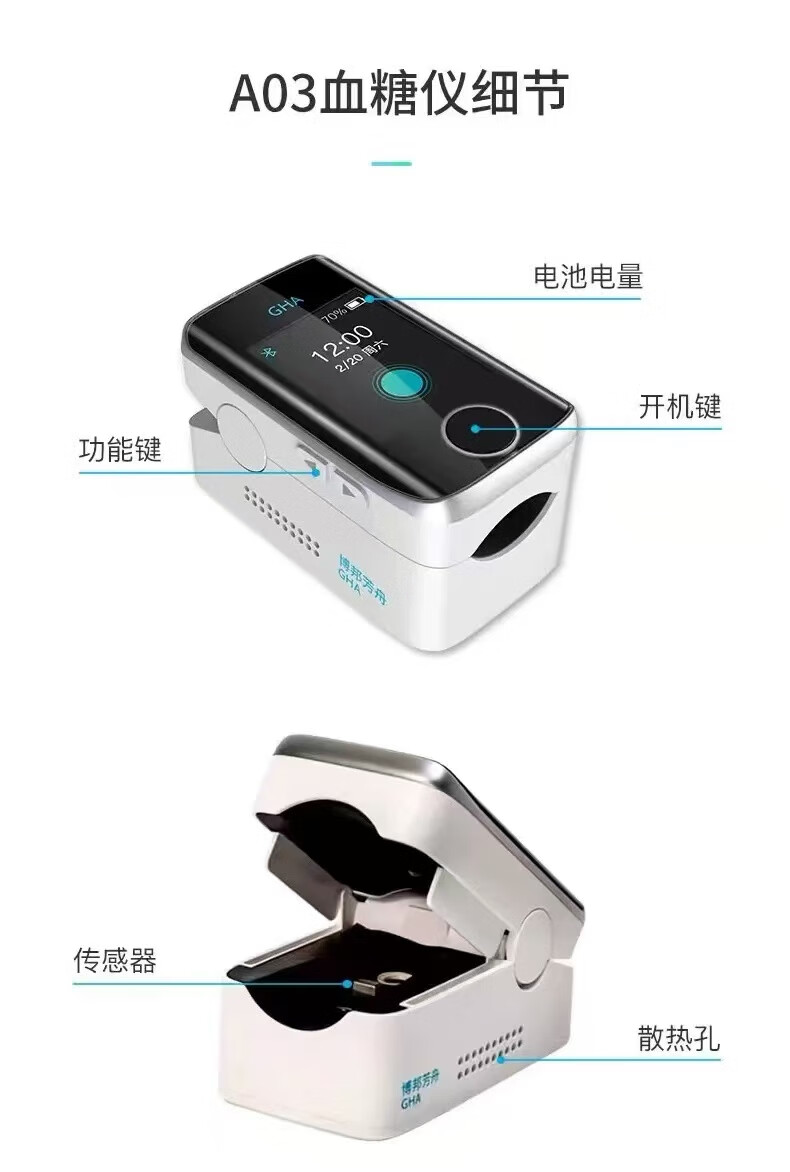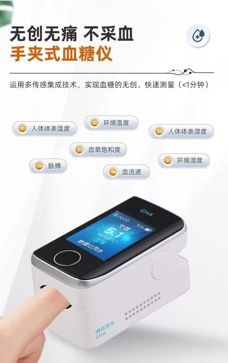 博邦芳舟无创血糖仪器家用免扎针无需采血手夹式无痛血糖仪动态夹手指测糖 升级多功能版,2年质保不准包退