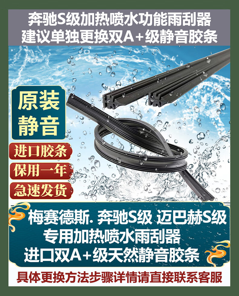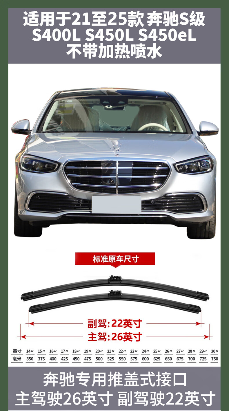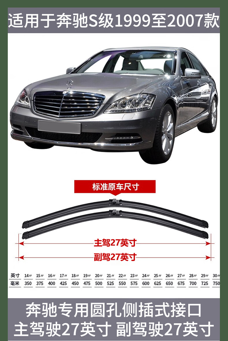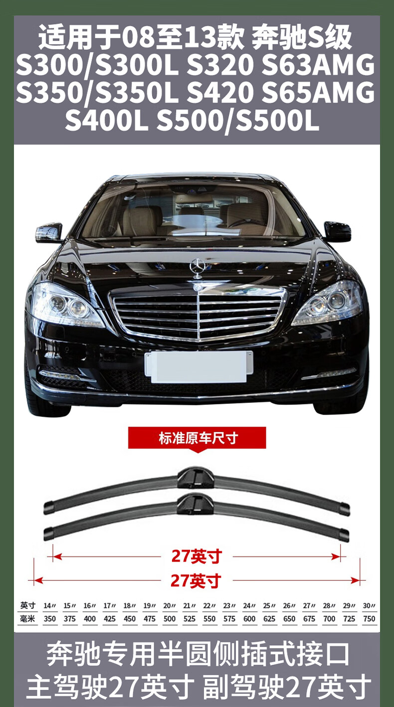 澳雷洁(AOLEIJIE)奔驰S级专用雨刮器 雨刷 原装静音 适用于 奔驰S350L S420 S65 08至13款 前挡一对装