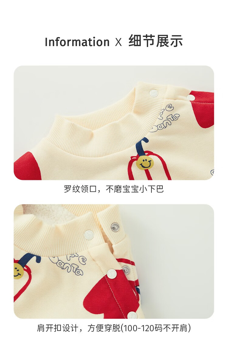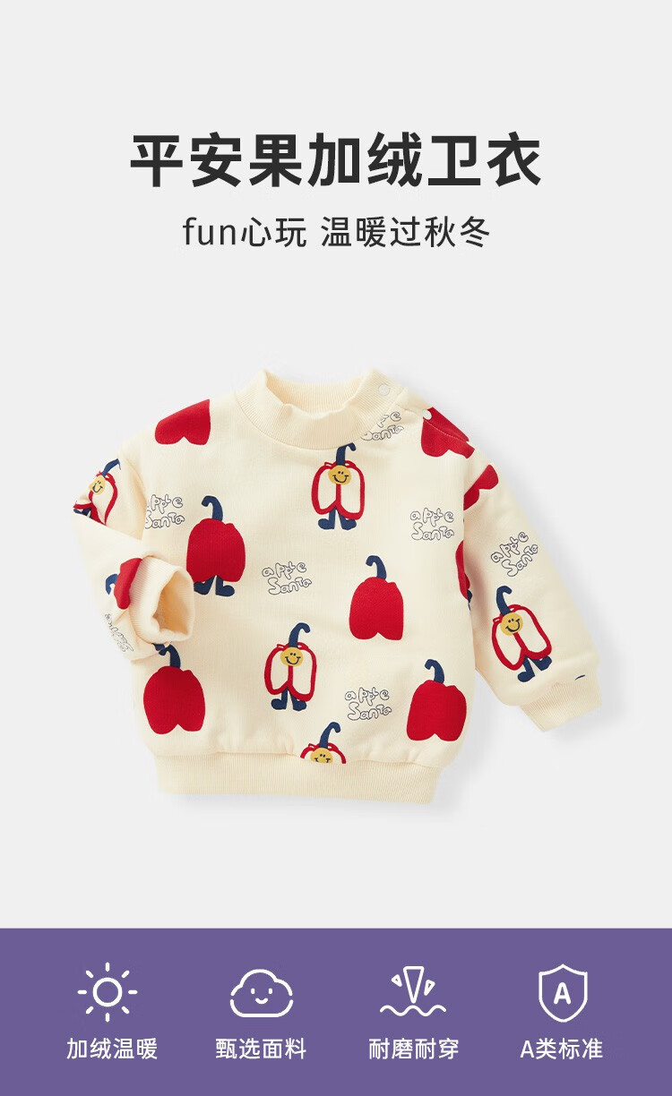 博睿恩【厚绒款】婴儿拜年服卫衣宝宝新年衣服冬季加绒加厚儿童上衣 平安果(偏大一码购买) 120