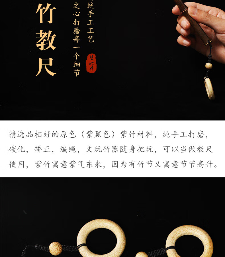 艺竹情紫竹戒尺教棍藤条手把件家用竹条实心竹教鞭教师棍竹子竹鞭紫竹鞭 直径1.5厘米不带配饰 长度60厘米
