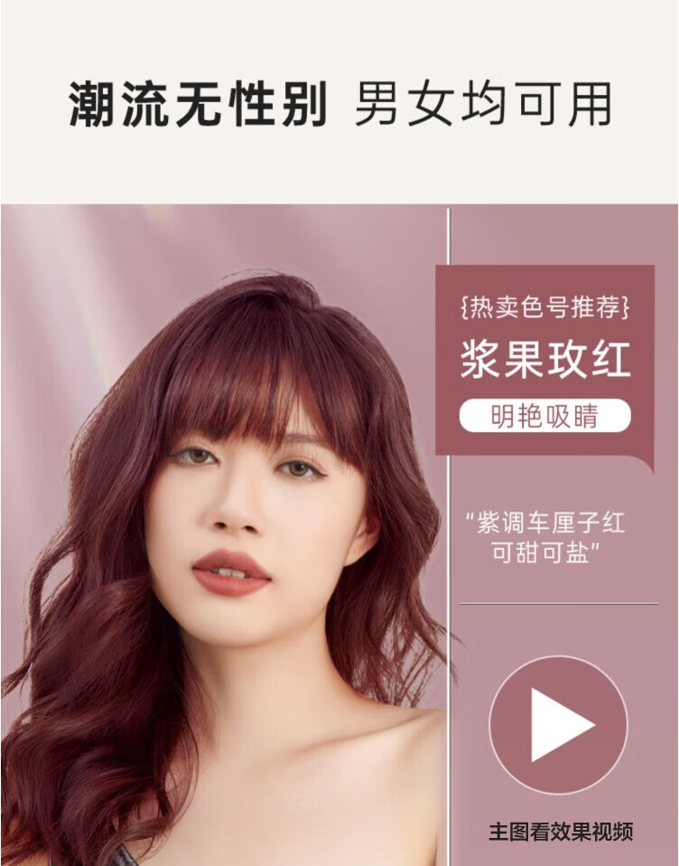 探色染发剂男女士专用自己在家染易上色染发膏植物纯免漂温和遮盖白发 浆果莓红(可盐可甜)