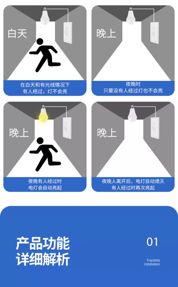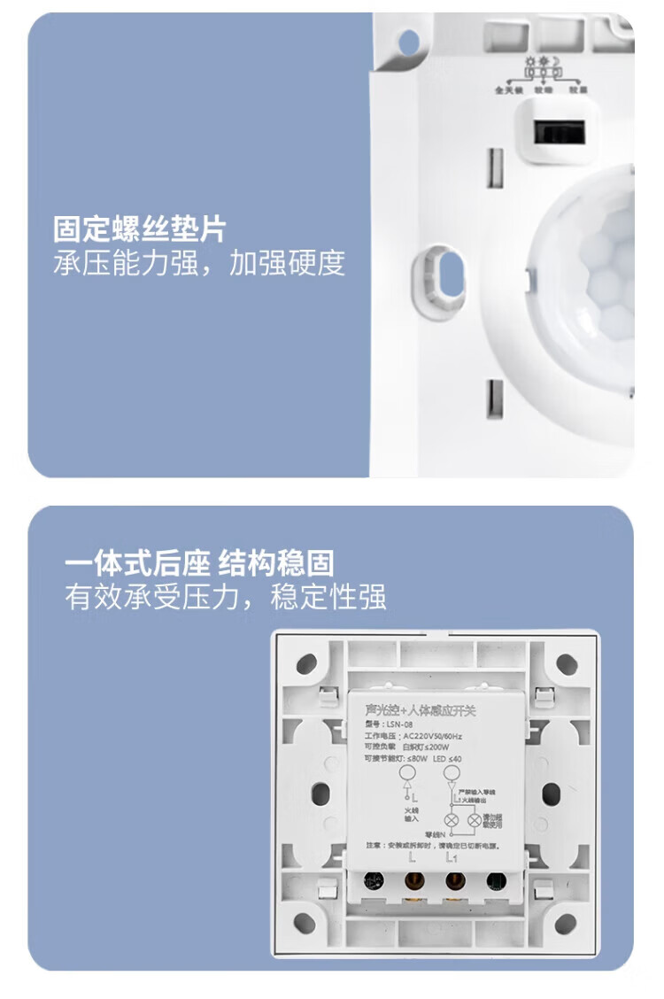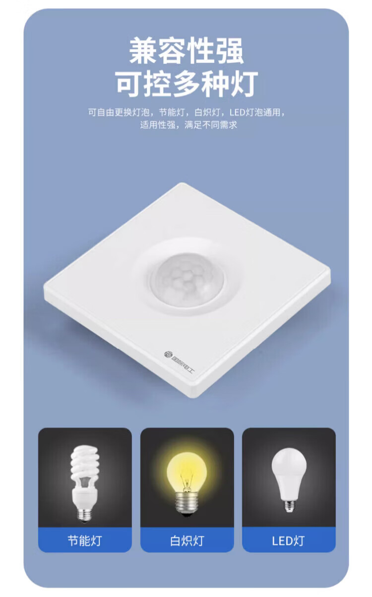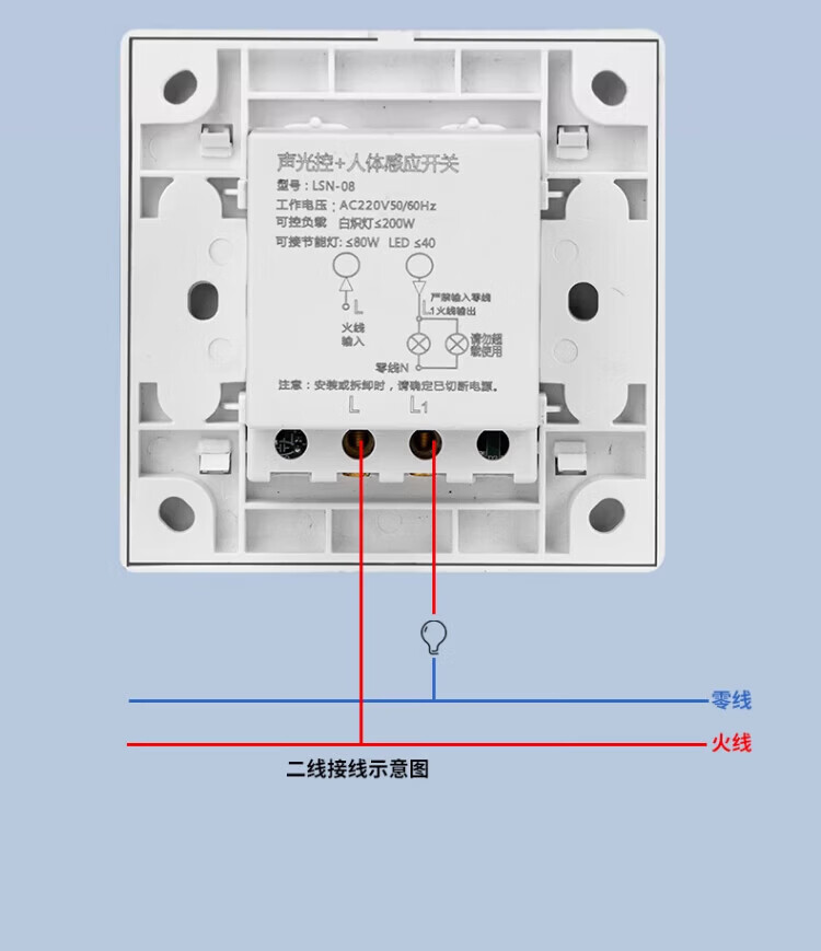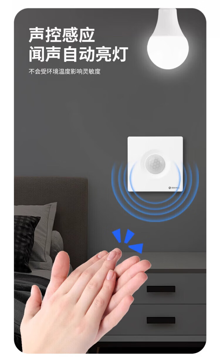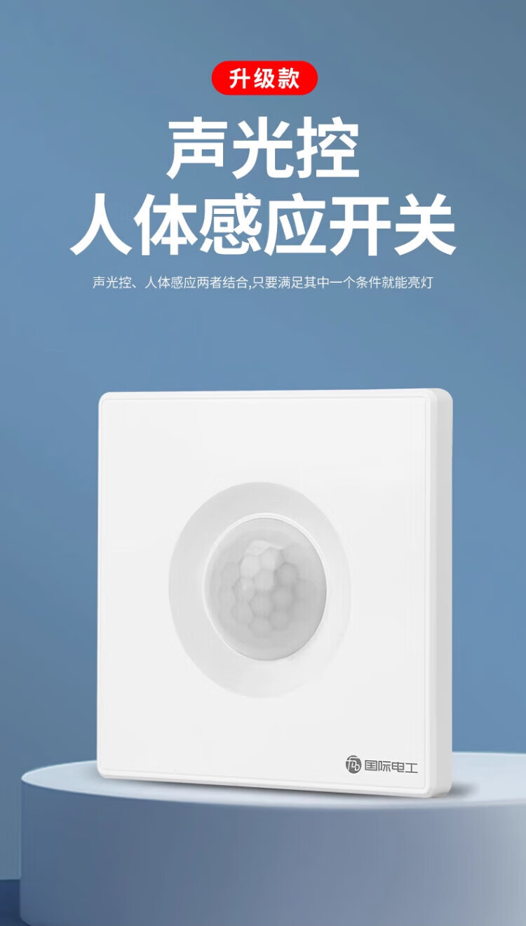 国际电工86型声控加人体感应开关智能语音控制LED灯楼道延时红外线传感器 白色 声光控+人体感应【二线制】