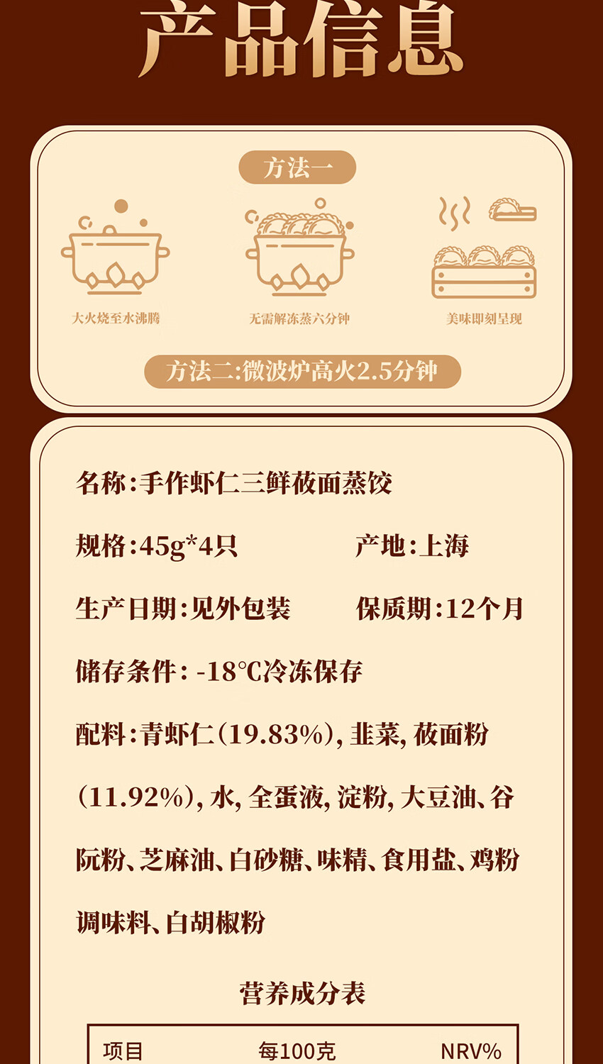 蒸笼头【虾仁三鲜莜面蒸饺】儿童速食营养早餐 速冻馄饨食品加热方便 莜面蒸饺虾仁三鲜4只*5袋装