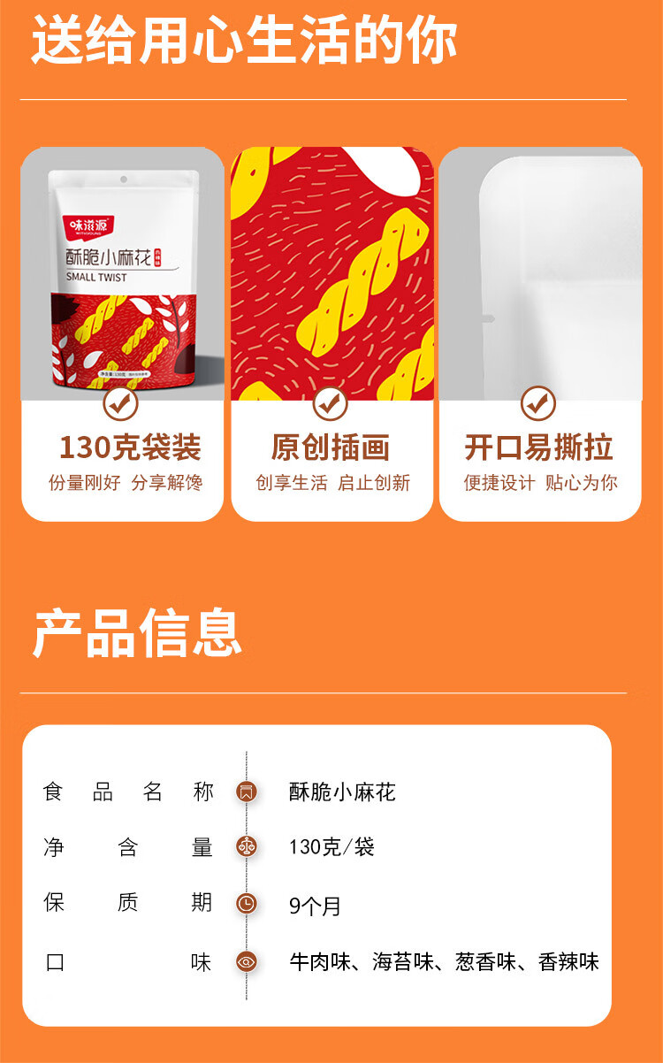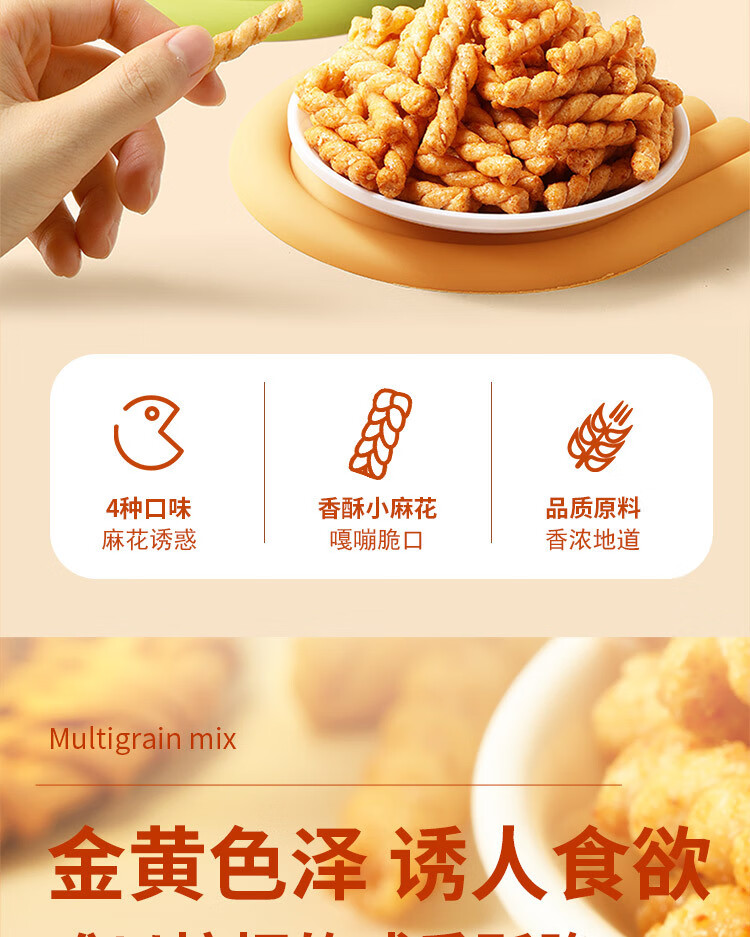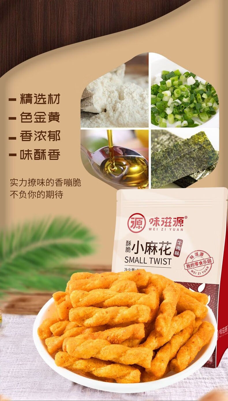 味滋源小麻花 多味混合小麻花 网红休闲零食小吃特产 海苔/牛肉/香辣/香葱(130g*4袋) 1件