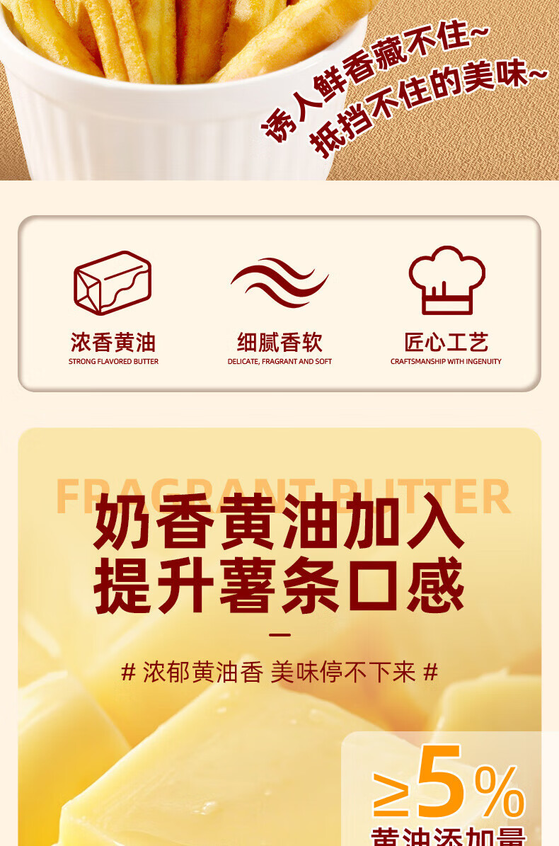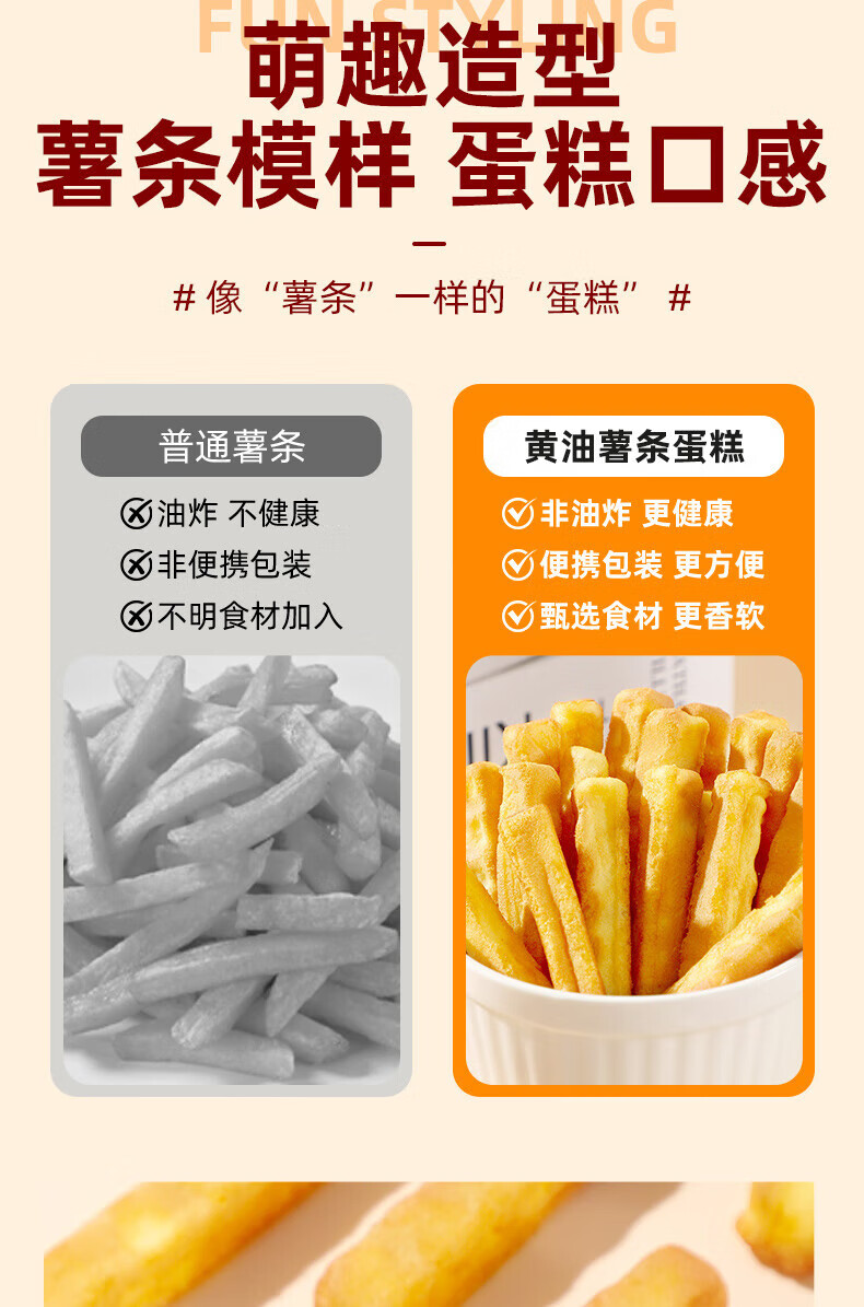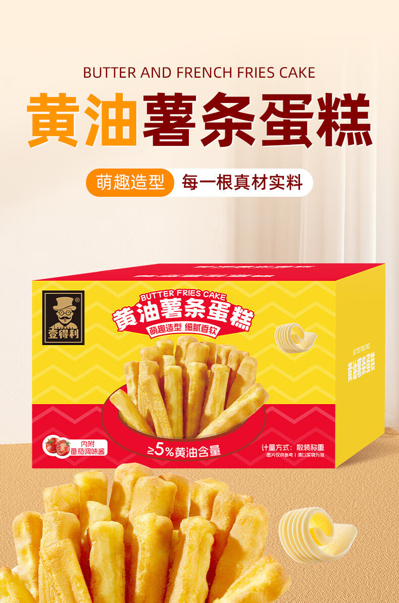 食芳溢小薯条蛋糕整箱早餐面包代餐零食品点心办公室休闲解馋小吃 4包丨黄油薯条(加番茄酱)