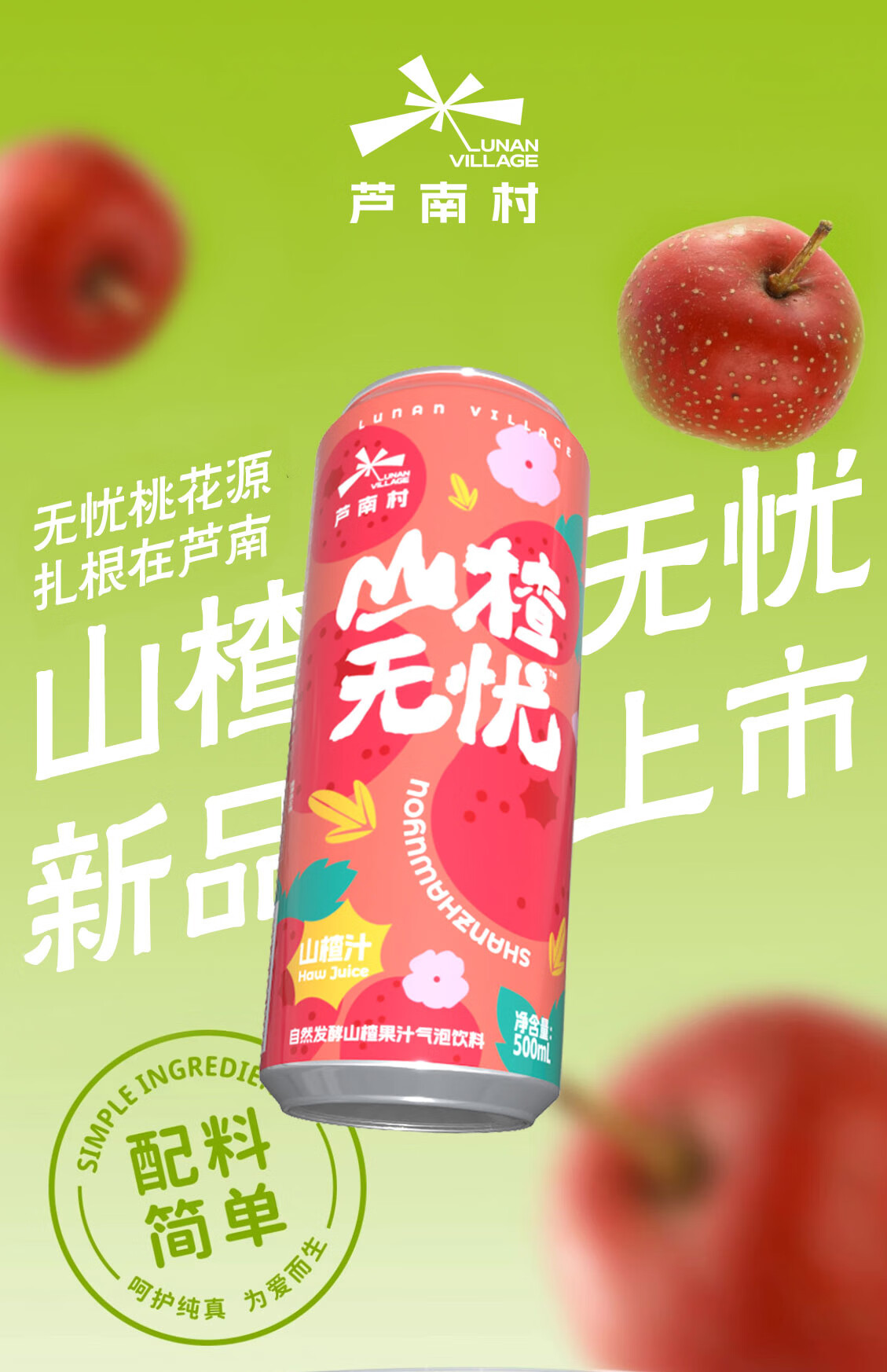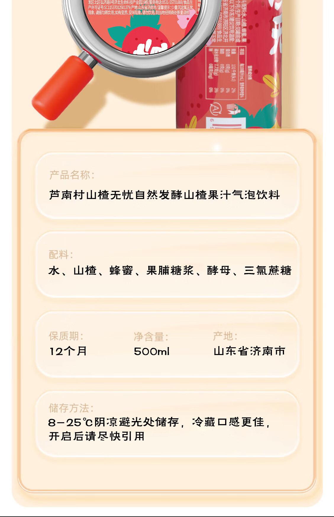 芦南村济南本地特色山楂自然发酵气泡饮料冰糖葫芦口味礼盒500ml*10罐