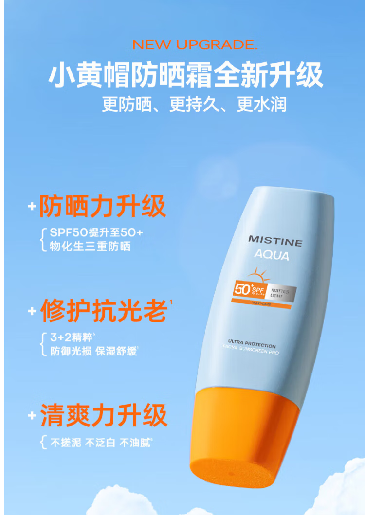 MISTlNE泰国版小黄帽防晒乳霜乳男女士水润清爽学生户外军训防水 泰国进口版 40ml*4瓶