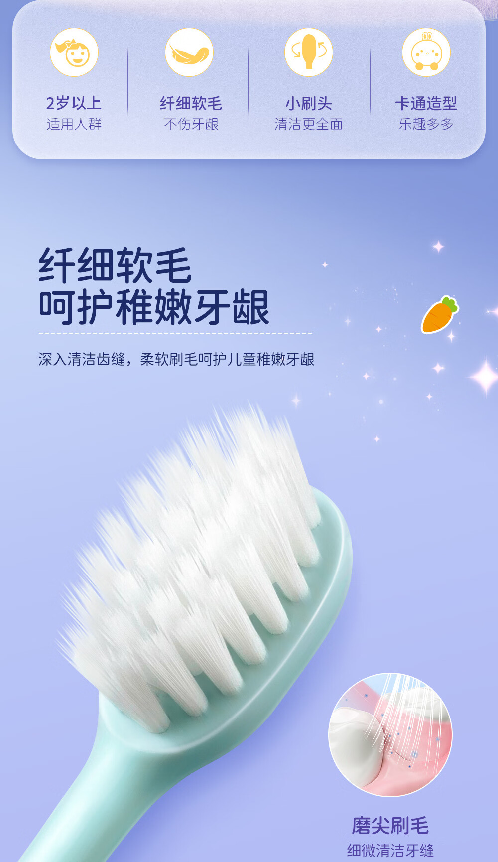 青蛙儿童牙刷2-12岁呵护宝宝牙龈软毛牙刷宝宝专护细软毛刷头牙刷 【呵护宝宝牙龈】纤细软毛牙刷6支