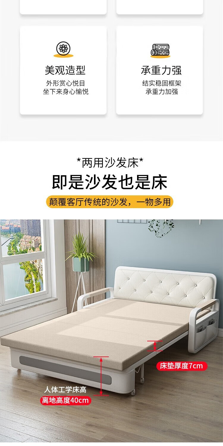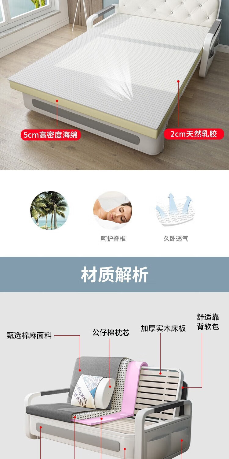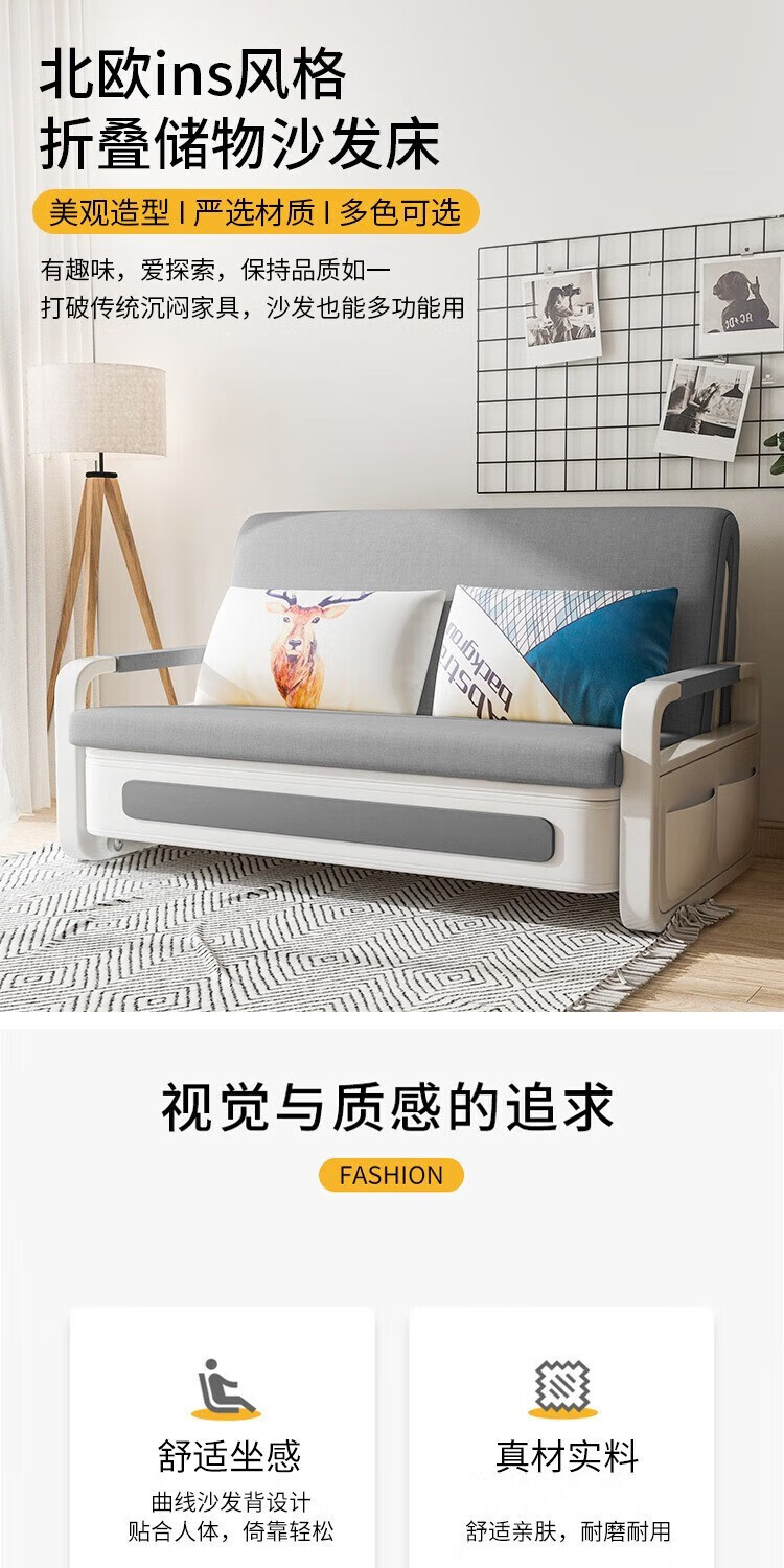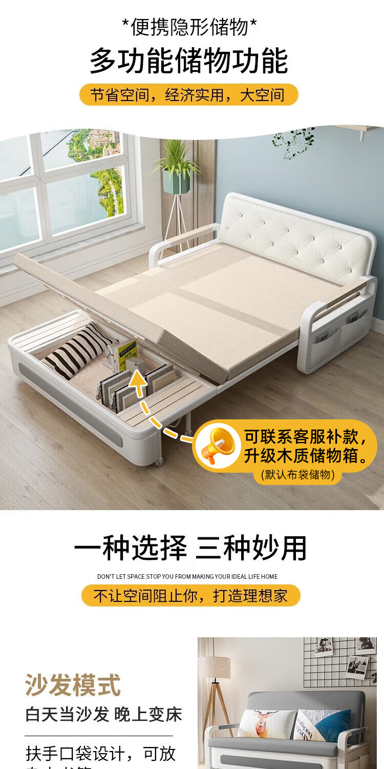 惠寻折叠沙发床一体两用多功能小户型伸缩床单人抽拉客厅简易储物沙发 【1.28m储物款】5cm海绵+2cm乳胶