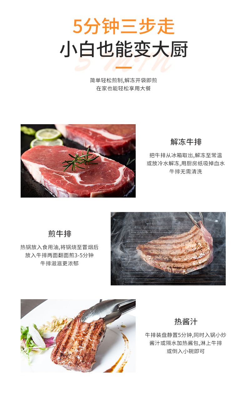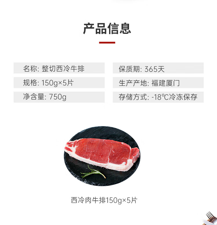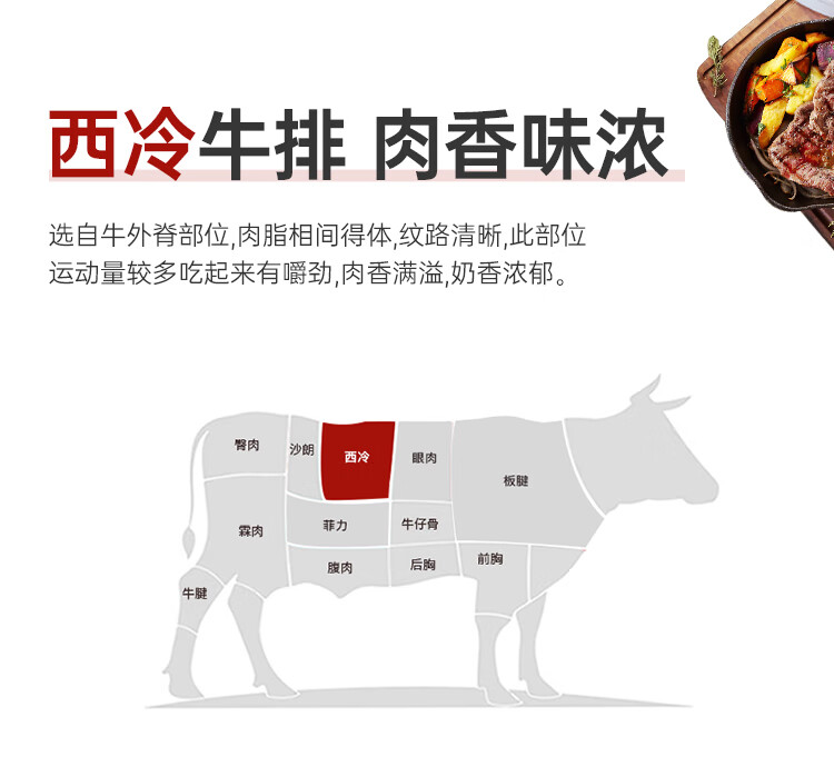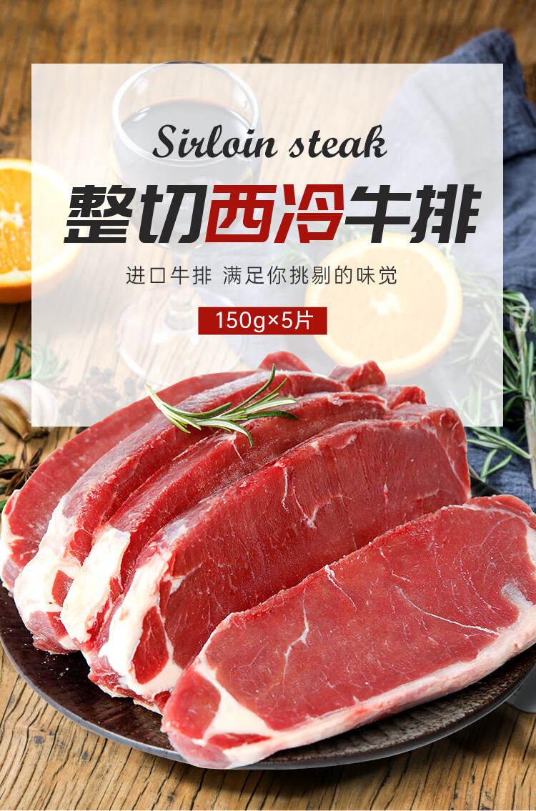 如意三宝原肉整切西冷牛排黑椒儿童牛排套餐牛肉牛扒 西冷牛排750g(150gx5片)/盒