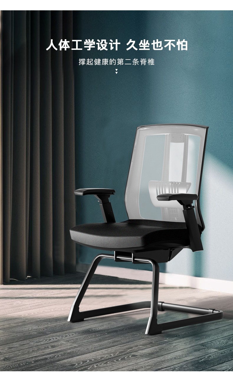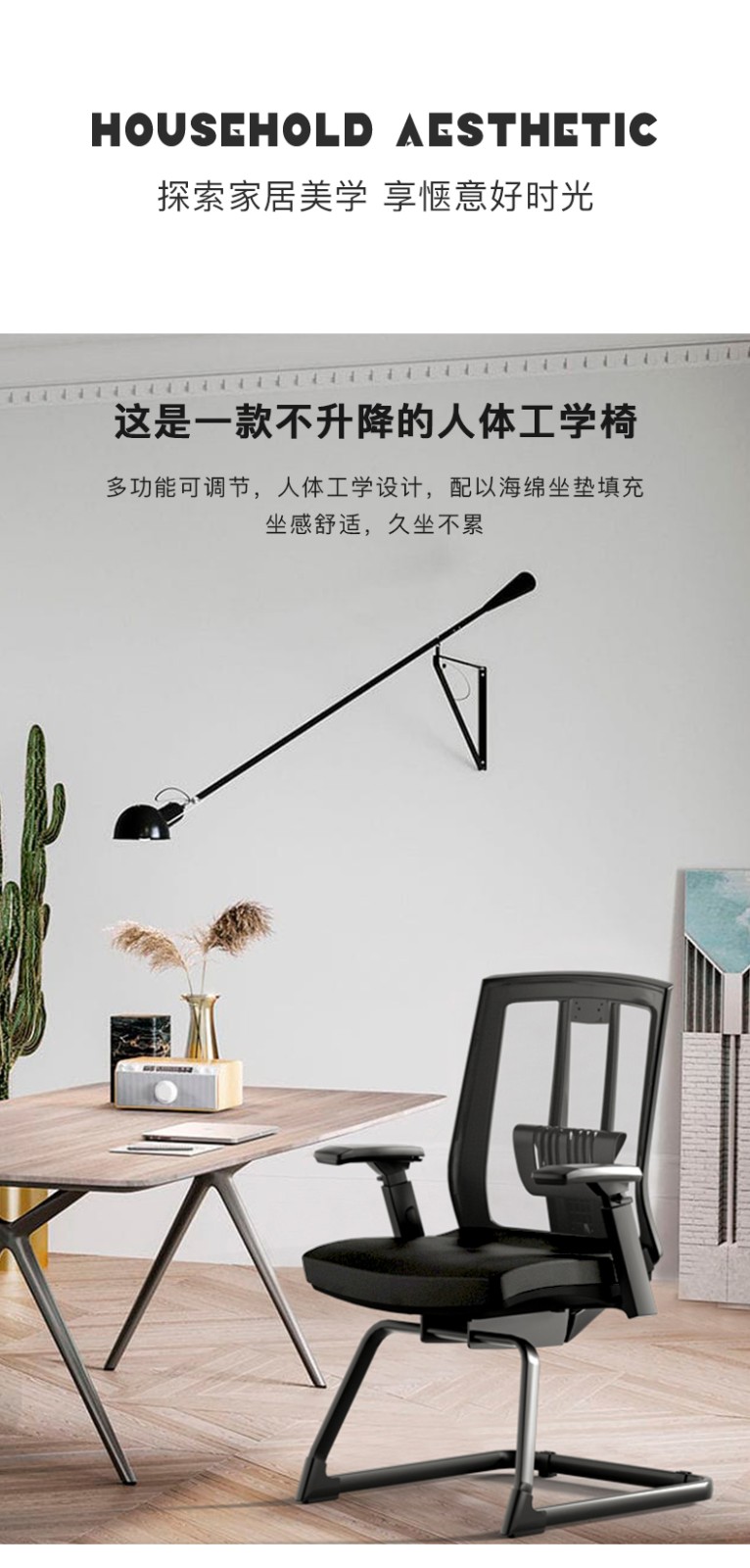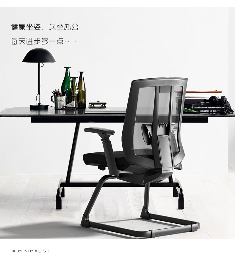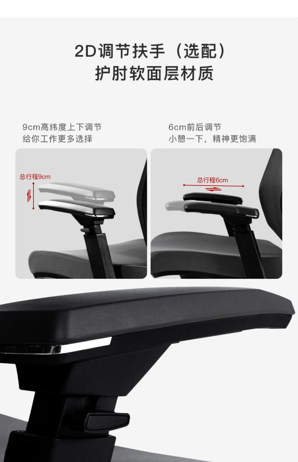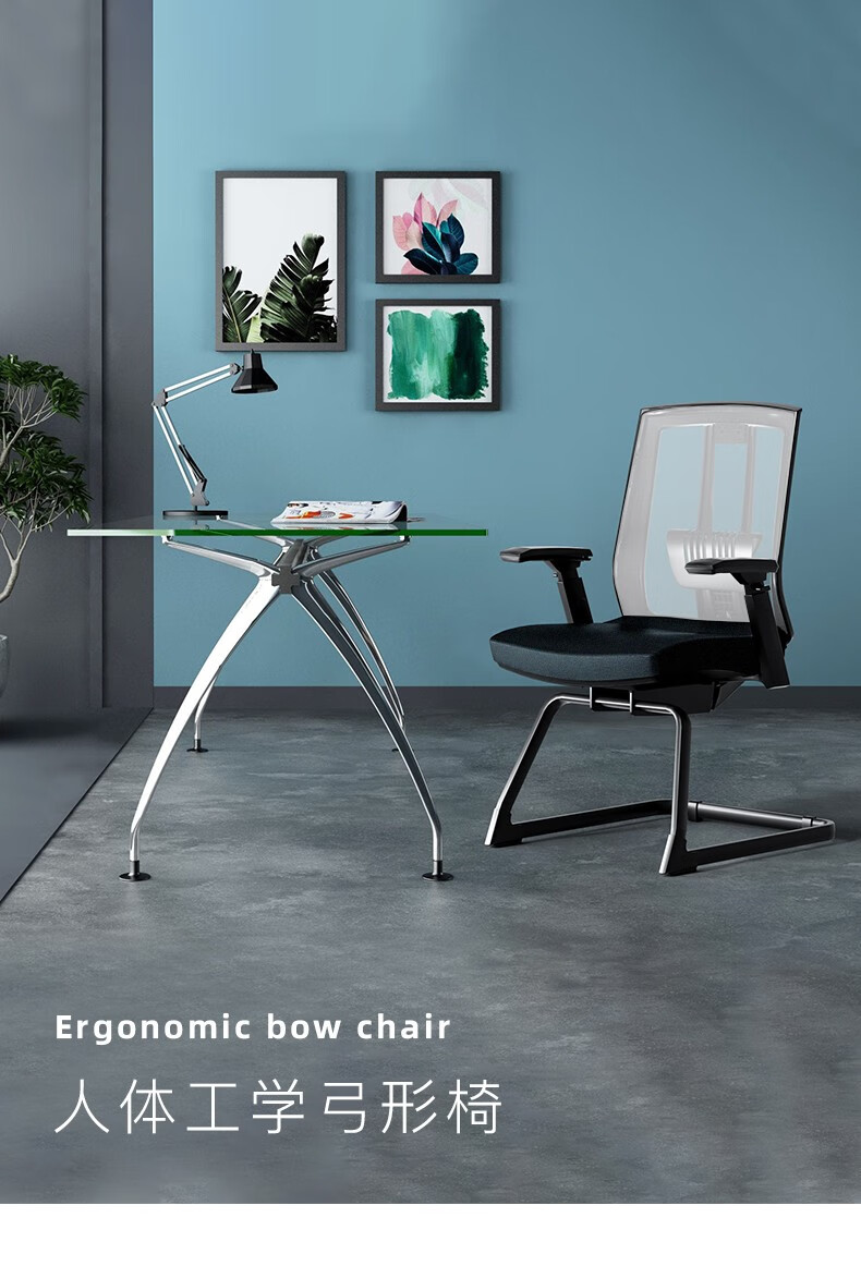 GAVEE 人体工程学弓形椅 固定脚电脑椅办公椅家用学习椅子操作台配套椅 高级灰色扶手可升降带头靠 网布 现货闪发