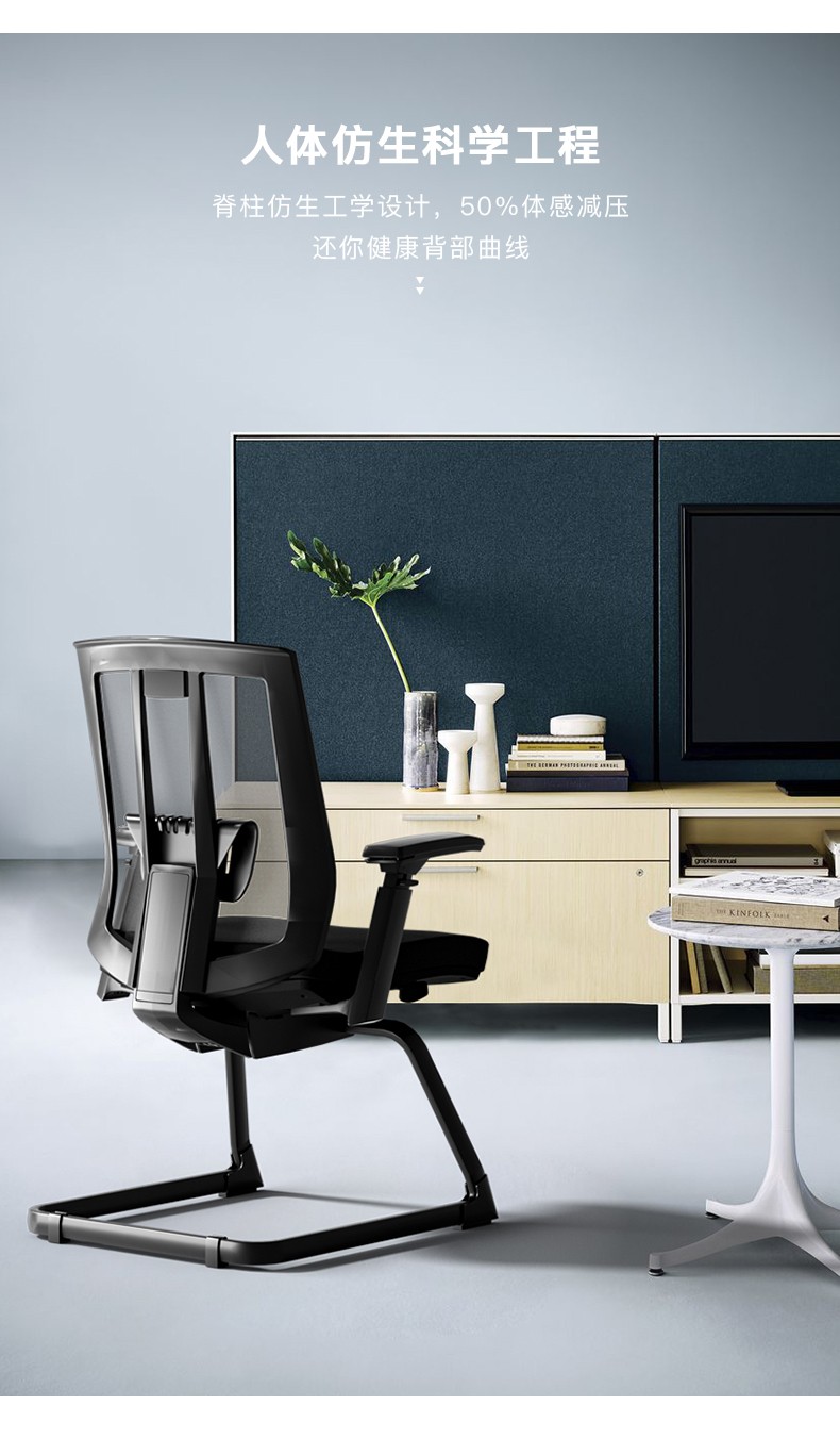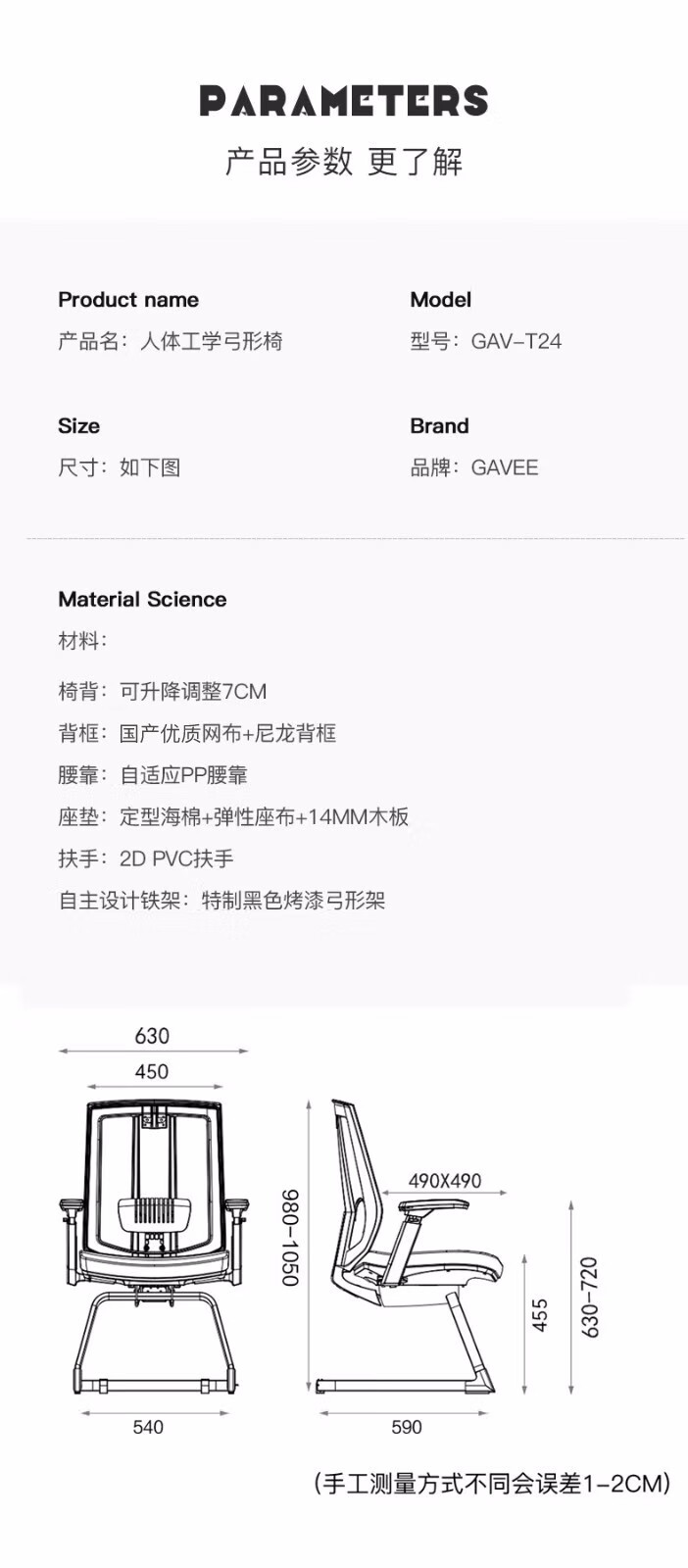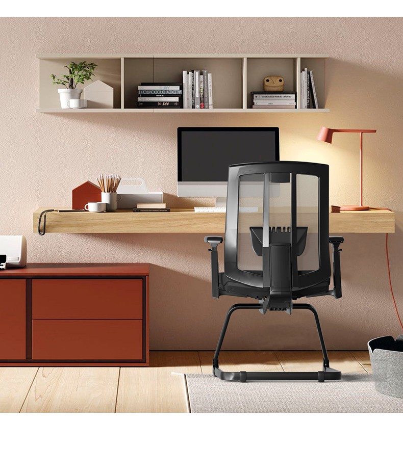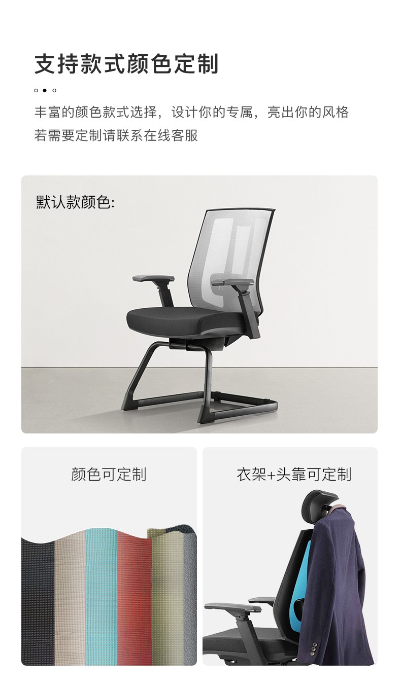 GAVEE 人体工程学弓形椅 固定脚电脑椅办公椅家用学习椅子操作台配套椅 高级灰色扶手可升降带头靠 网布 现货闪发