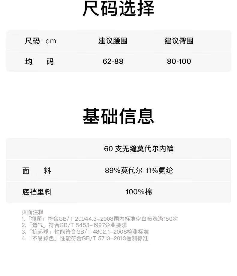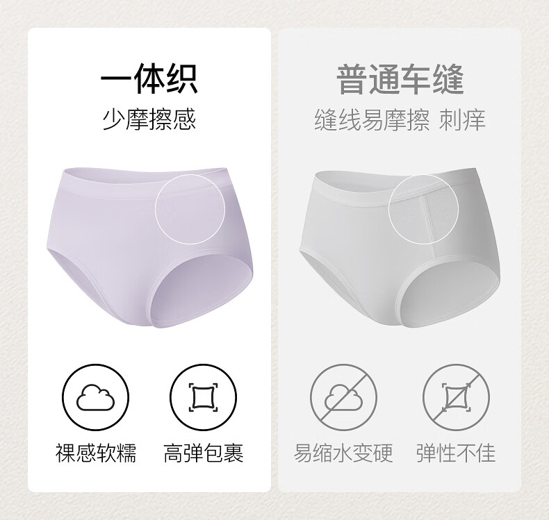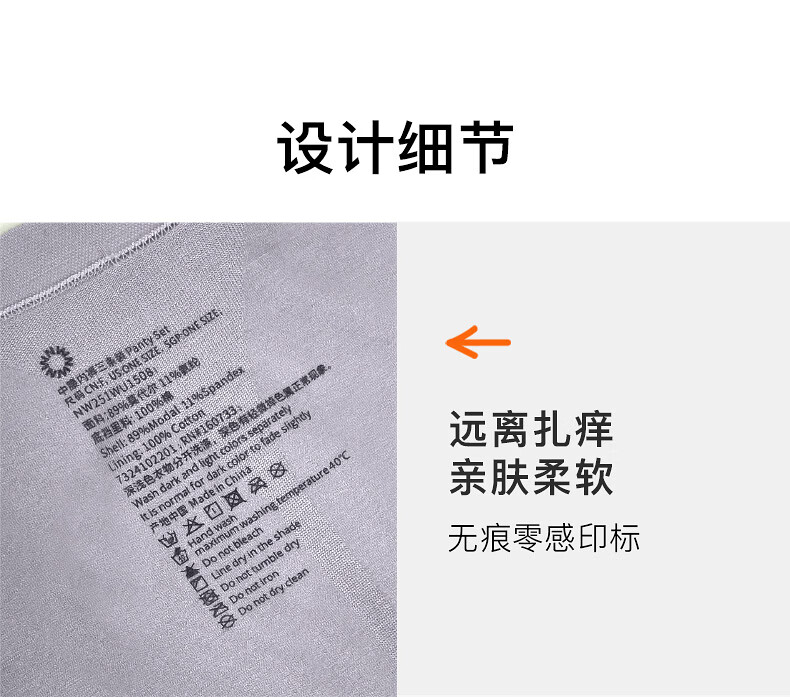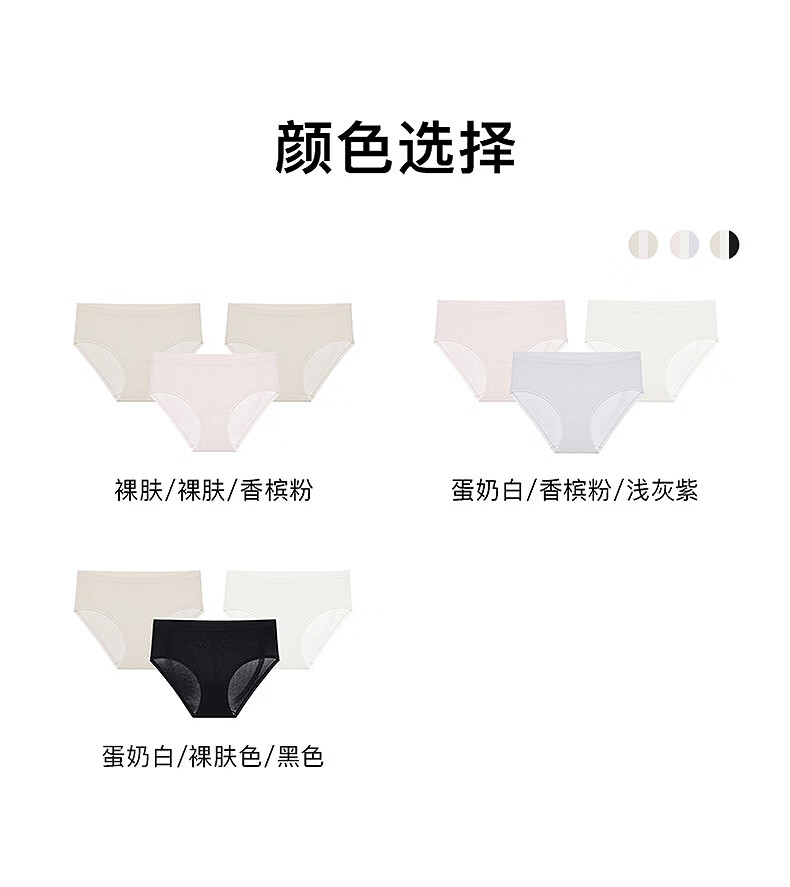 NEIWAI内外橙标3条装60支天丝莫代尔无缝内裤女无尺码中腰不夹臀7A抗菌 蛋奶白/裸肤色/黑色 3条 均码 F