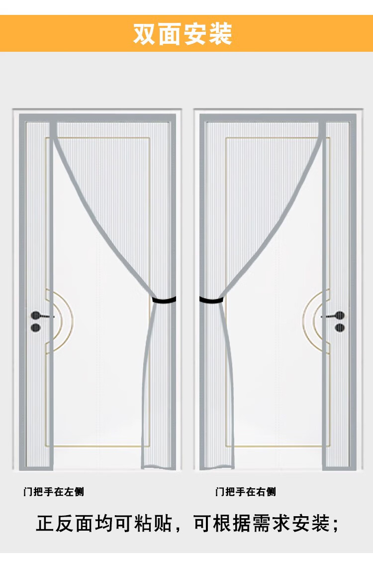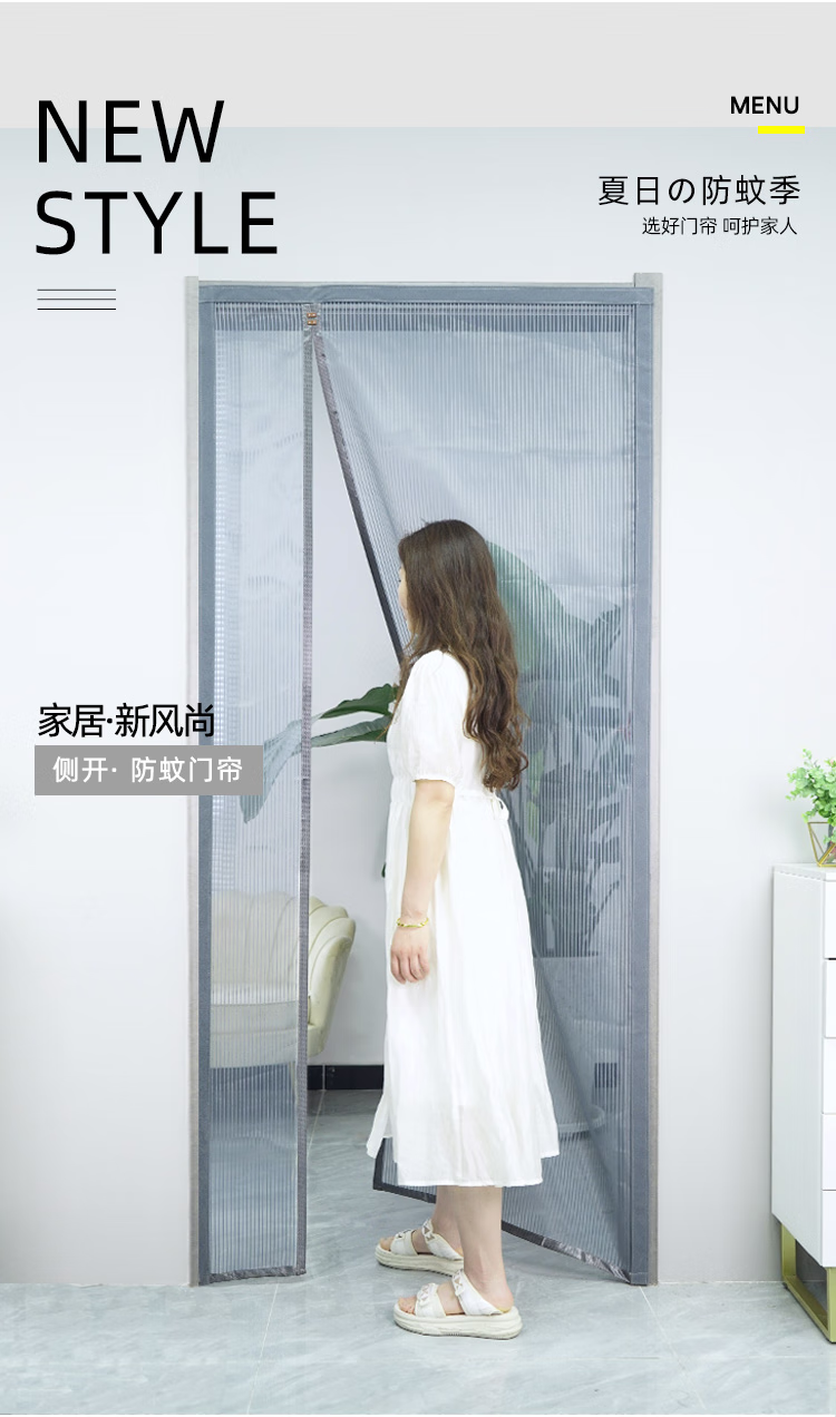 舒帘侧开全磁条防蚊门帘纱窗入户门防盗门纱帘磁吸夏季金刚网免打孔 纯灰【金刚网】9*4加粗大磁条 100*220cm【宽*高】