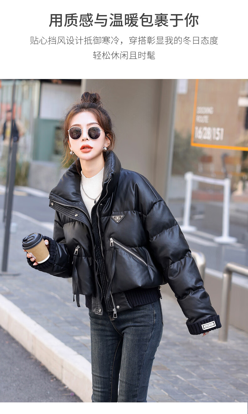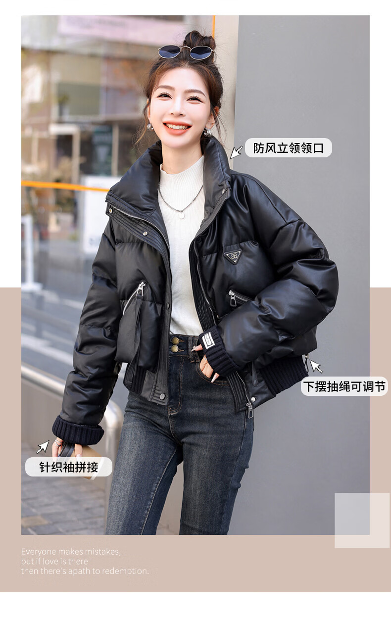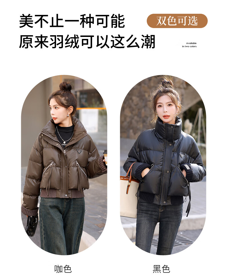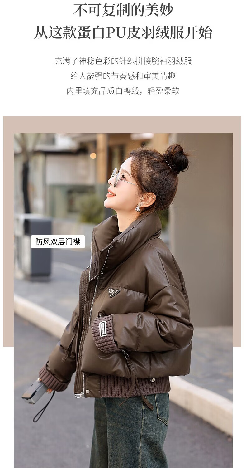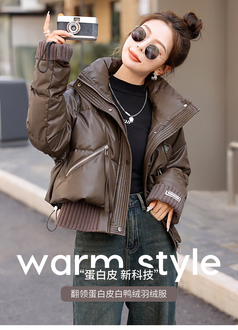 羽绒服女短款立领加厚面包服90鸭绒羽绒衣服宽松休闲百搭保暖外套 咖色 XL