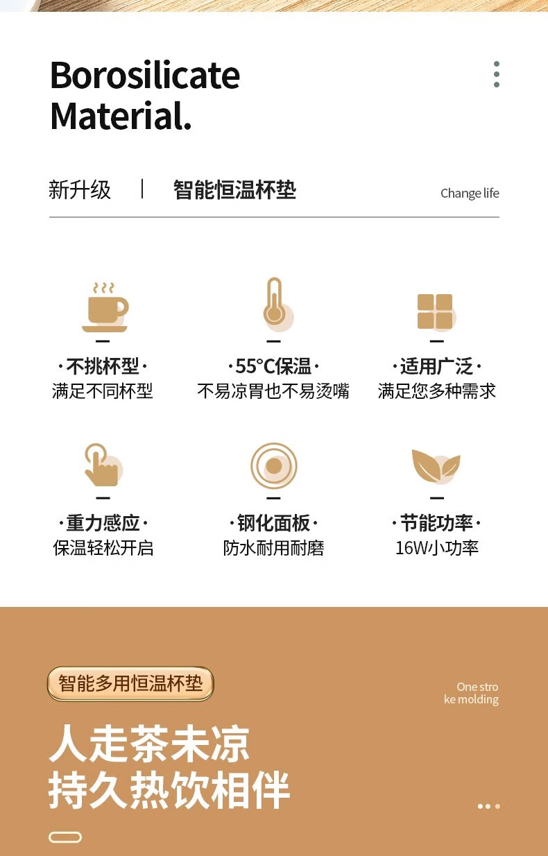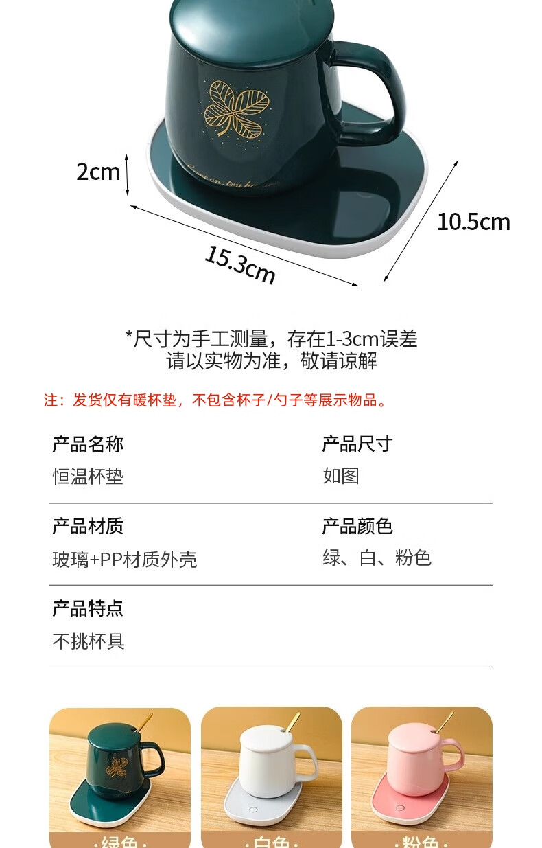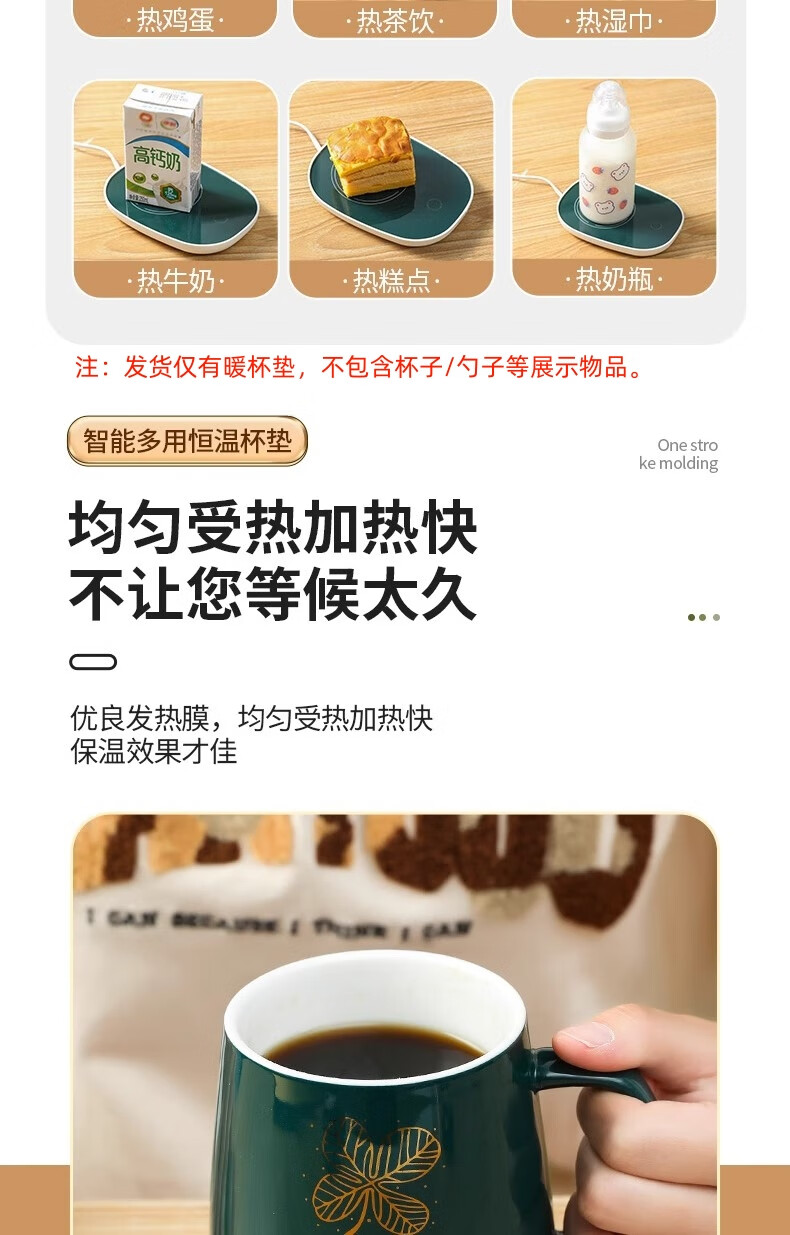 取暖器家用暖杯垫55度恒温杯垫电加热茶杯水杯恒温保温板杯垫暖杯子自动加热USB暖杯神器 55度恒温+重力感应开关【白色】【不含杯子】