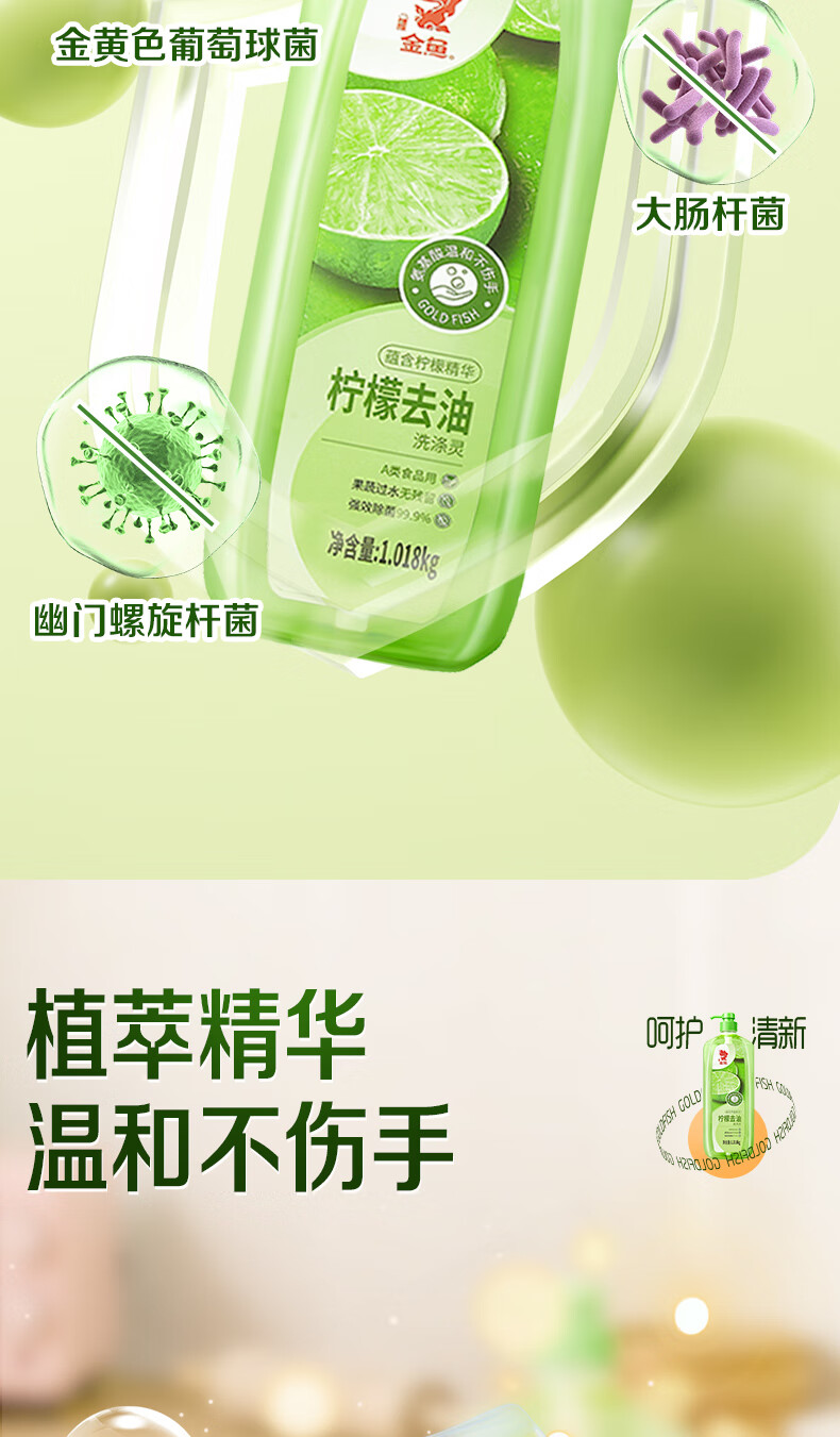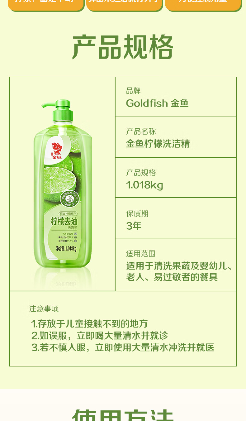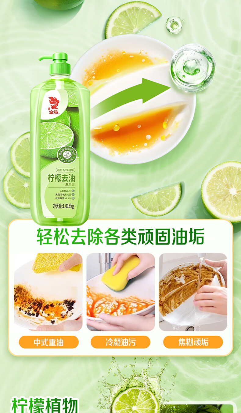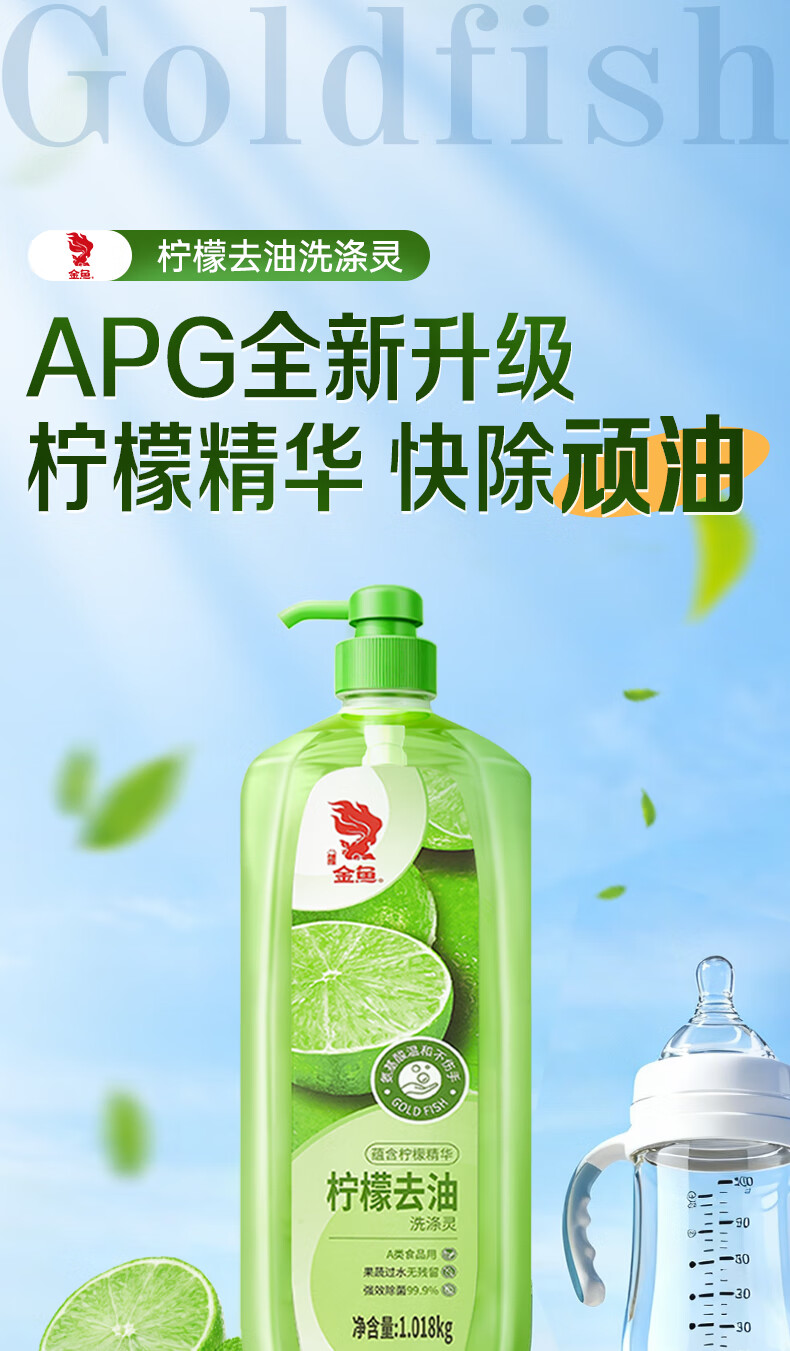 金鱼柠檬APG洗洁精1.018kg A类果蔬奶瓶洗洁剂洗碗液洗涤灵去油除味