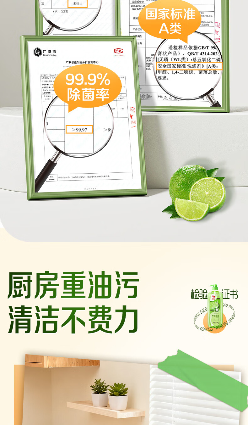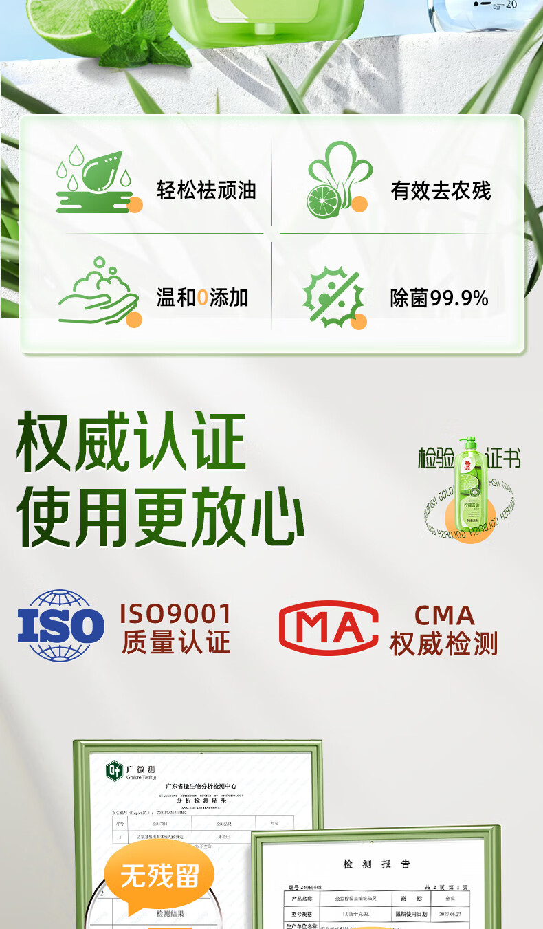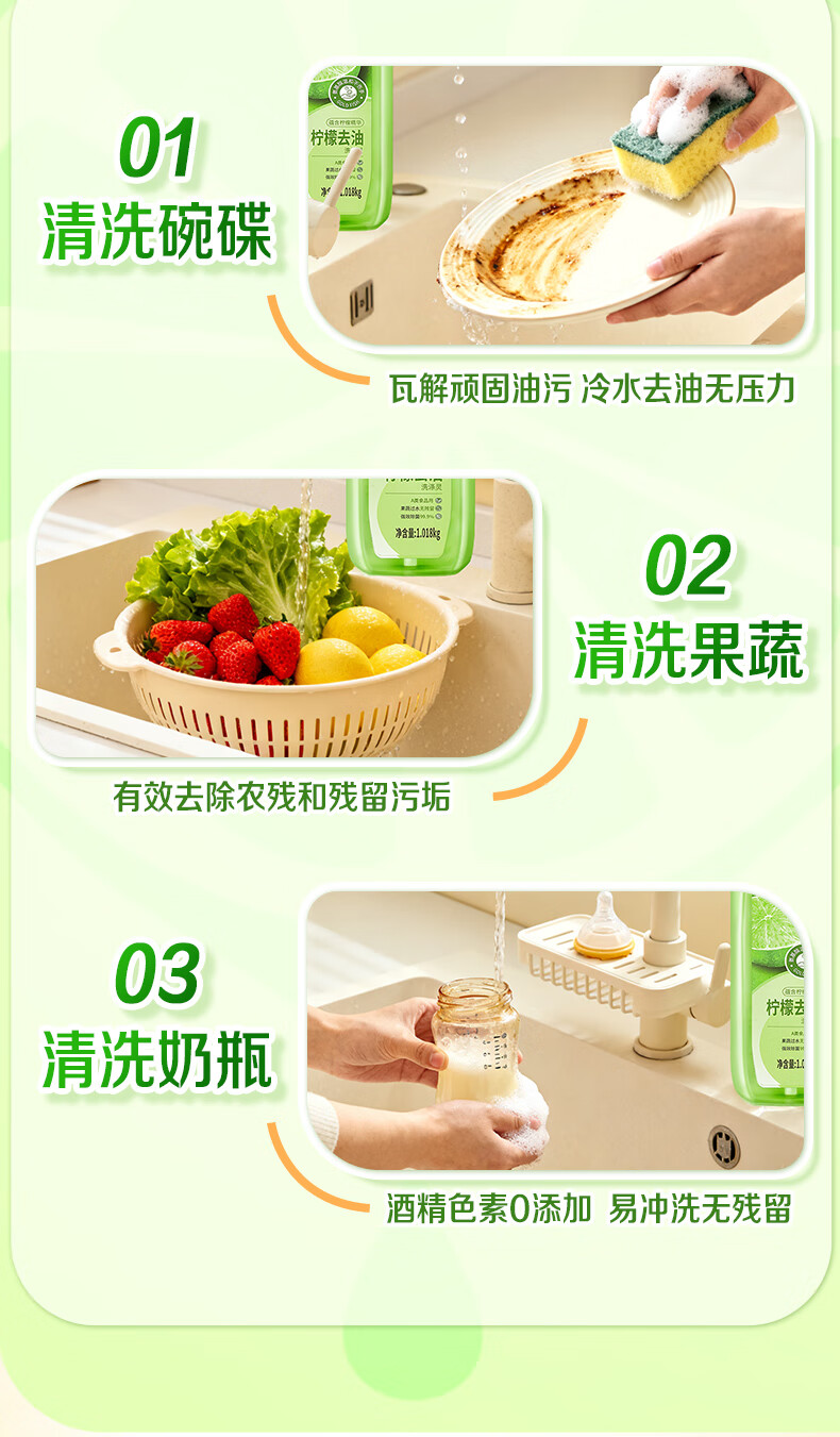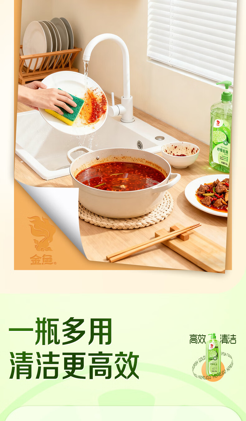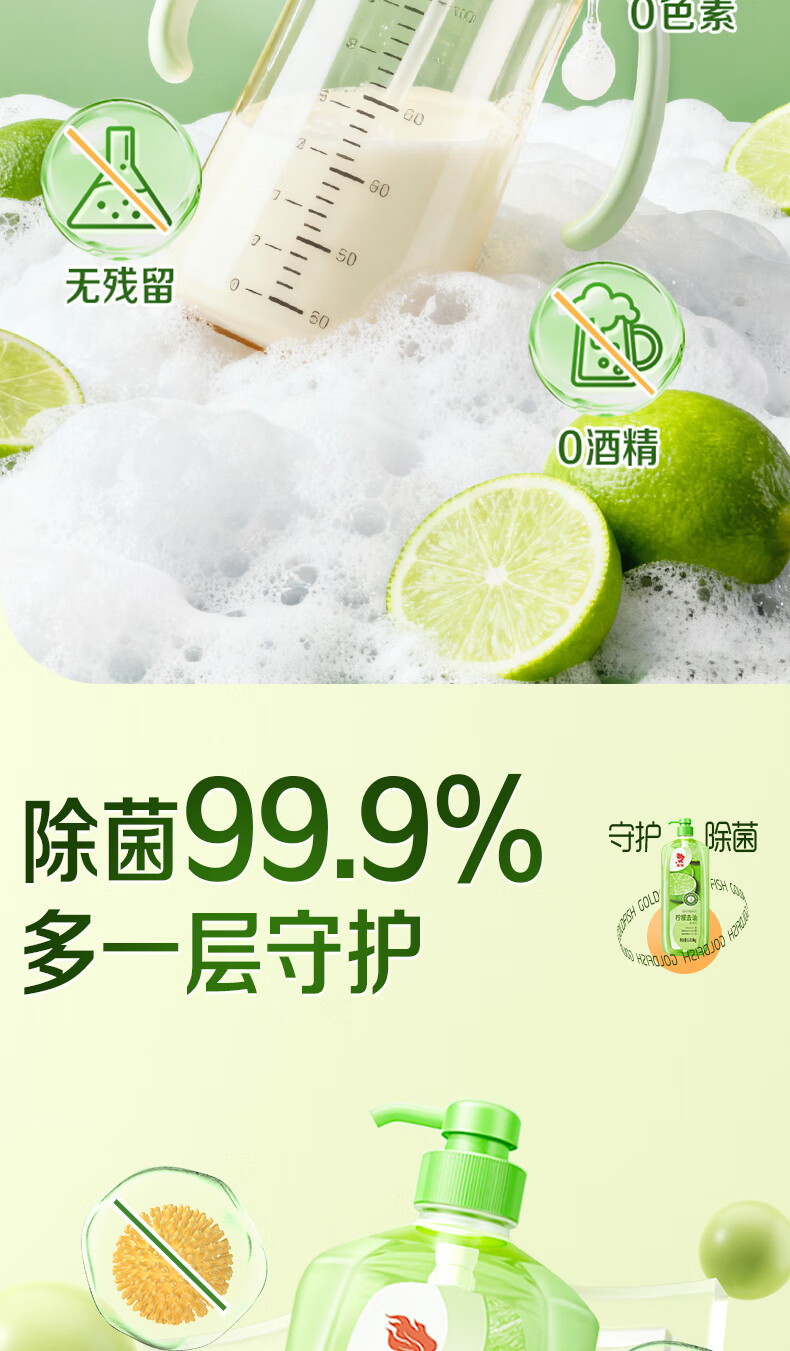 金鱼柠檬APG洗洁精1.018kg A类果蔬奶瓶洗洁剂洗碗液洗涤灵去油除味