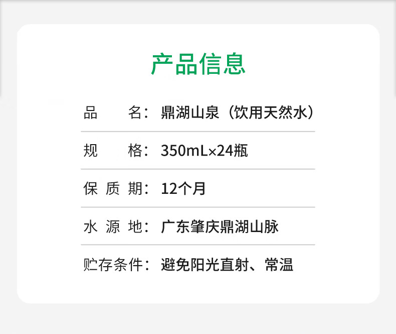 鼎湖山泉饮用天然水 350ML*24瓶 整箱装 小瓶便携 高端会议用水 350ML*24瓶