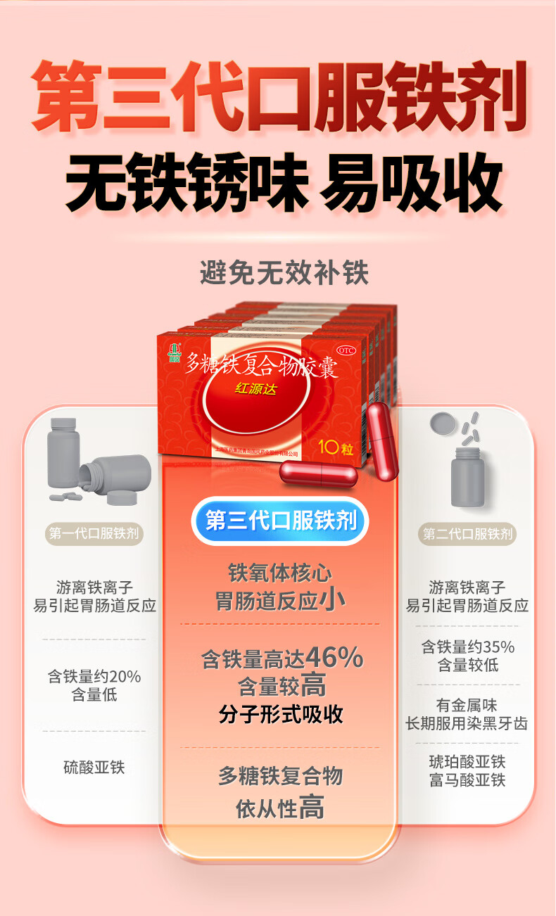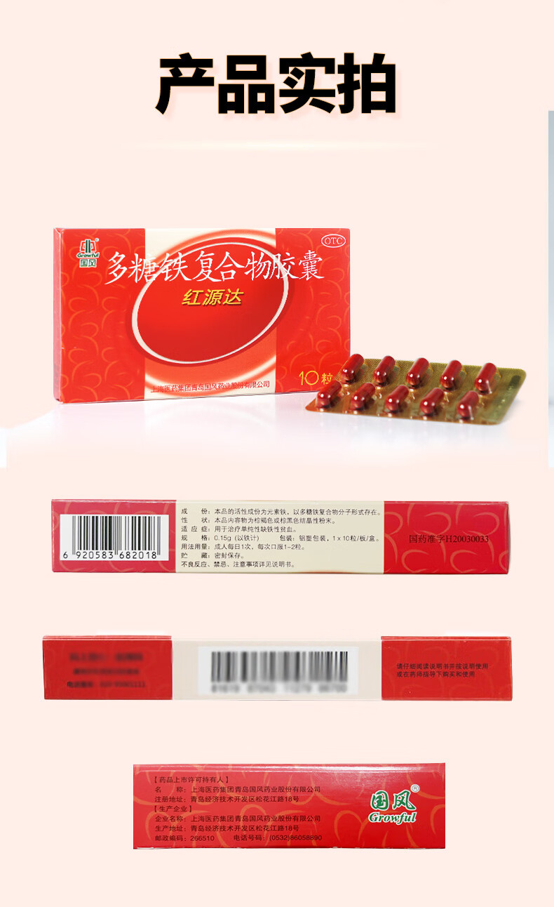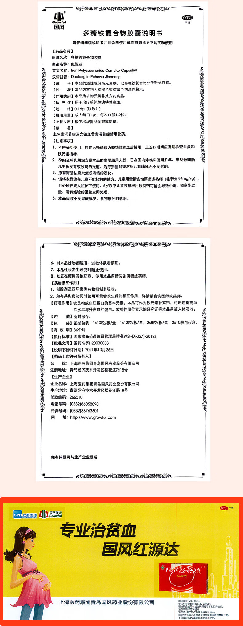 国风 红源达 多糖铁复合物胶囊10粒 孕期补铁哺乳期女性儿童补铁补铁剂经期补铁年货
