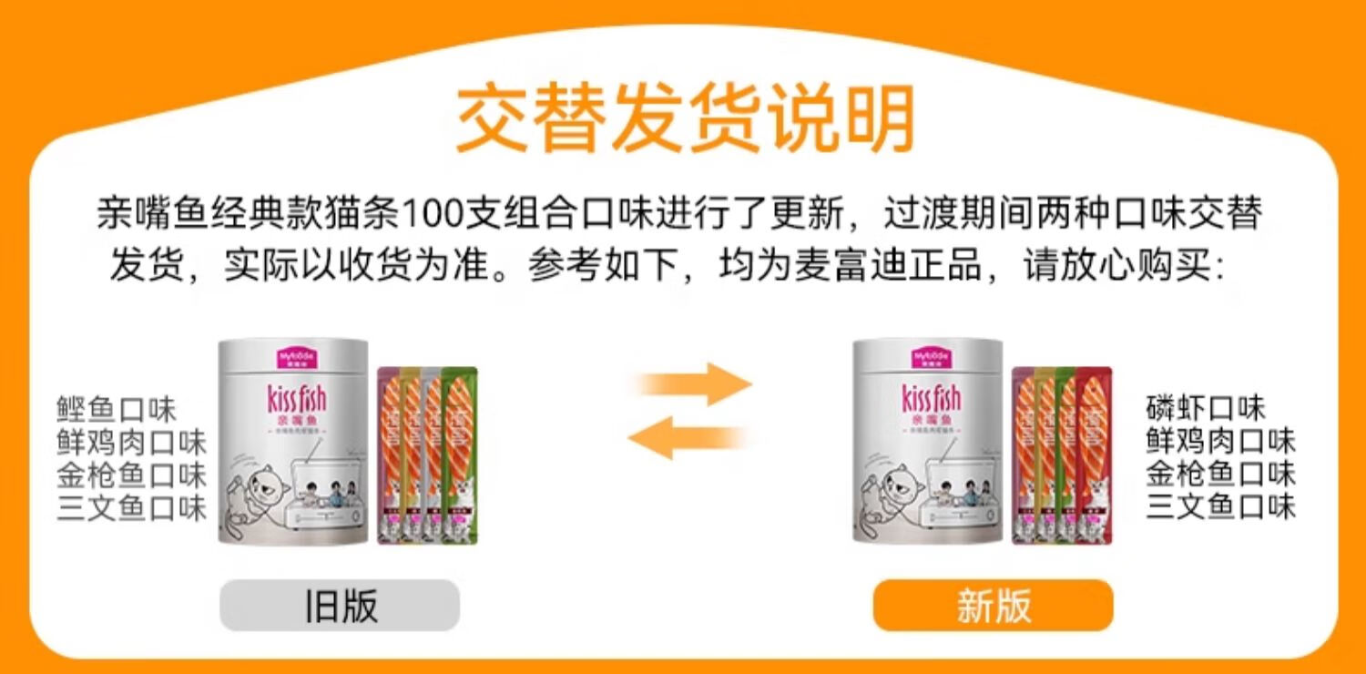 麦富迪 猫条 猫零食成幼猫通用猫咪零食营养猫湿粮 四口味混合装14g*100