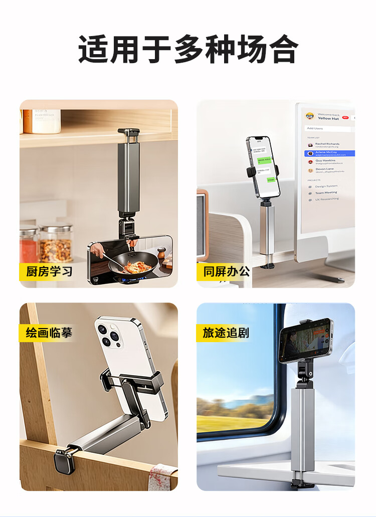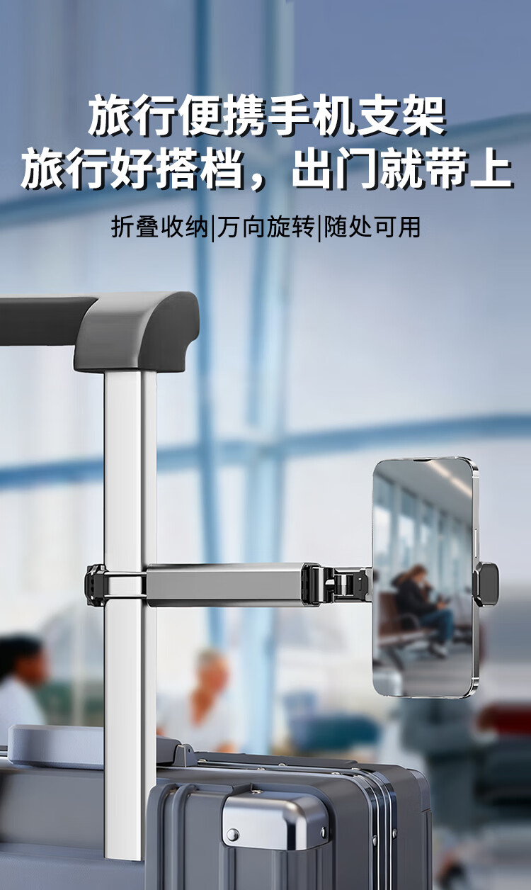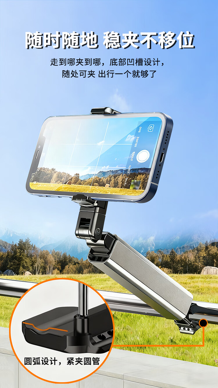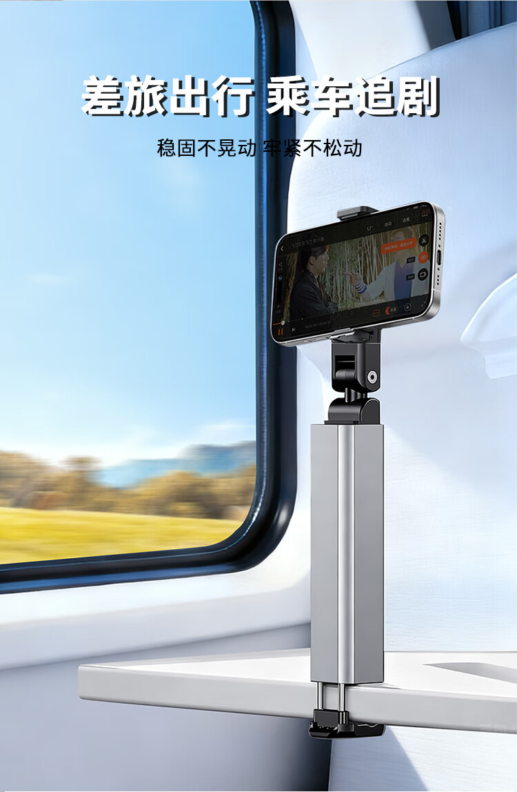 BZBC手机旅行支架铝合金便携式飞机高铁动车桌夹款支架追剧拍照学习旅行架自拍杆户外vlog直播架 枪色