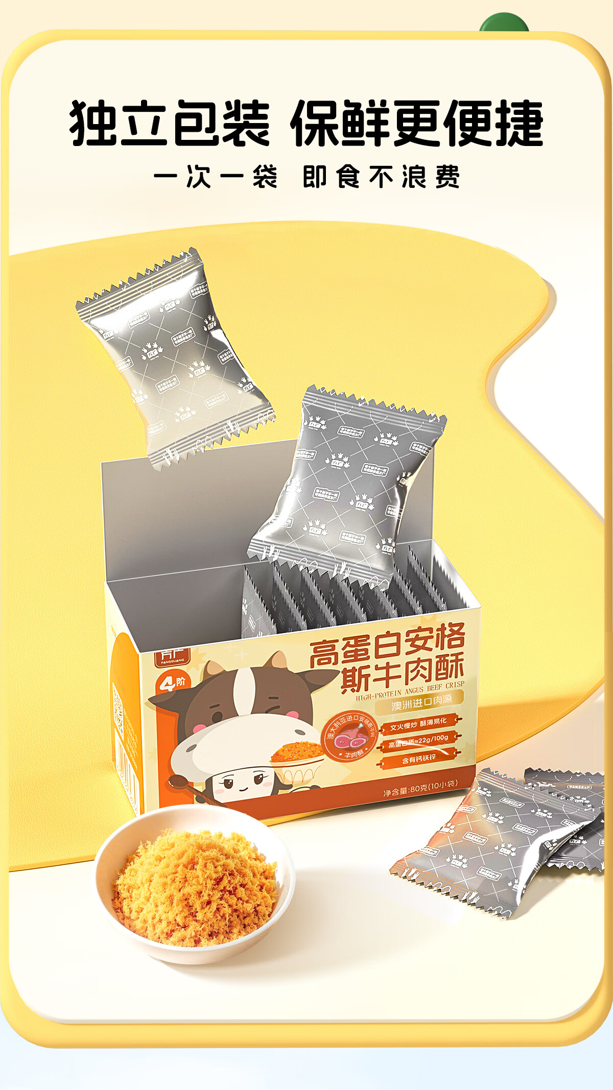方广猪肉酥儿童拌饭肉松调料肉酥高铁高蛋白锌牛肉酥芝麻猪肉酥 高蛋白安格斯牛肉酥80g