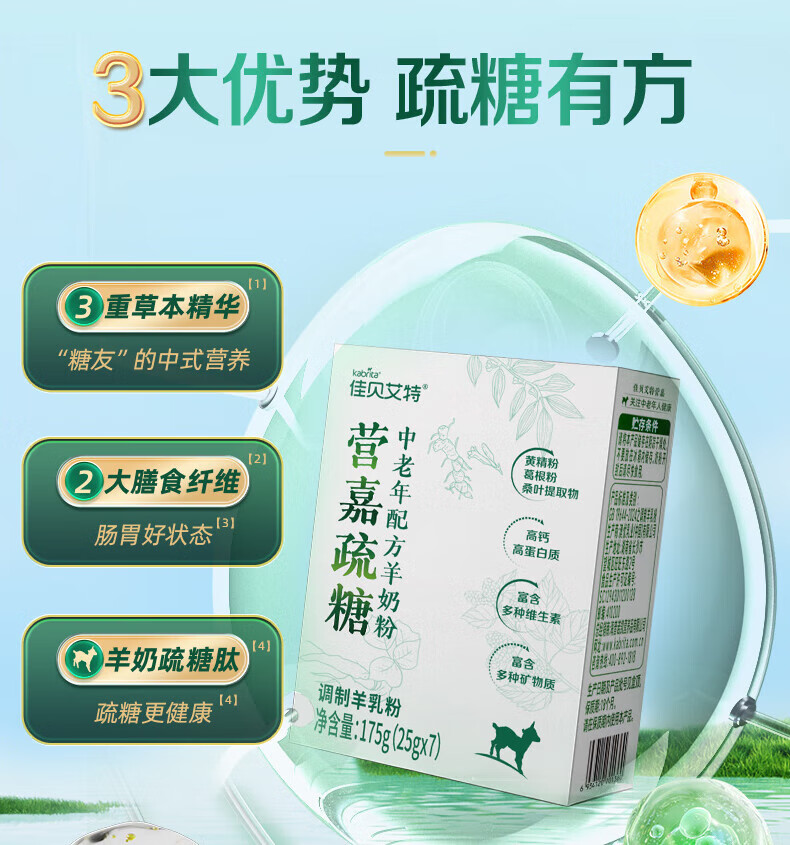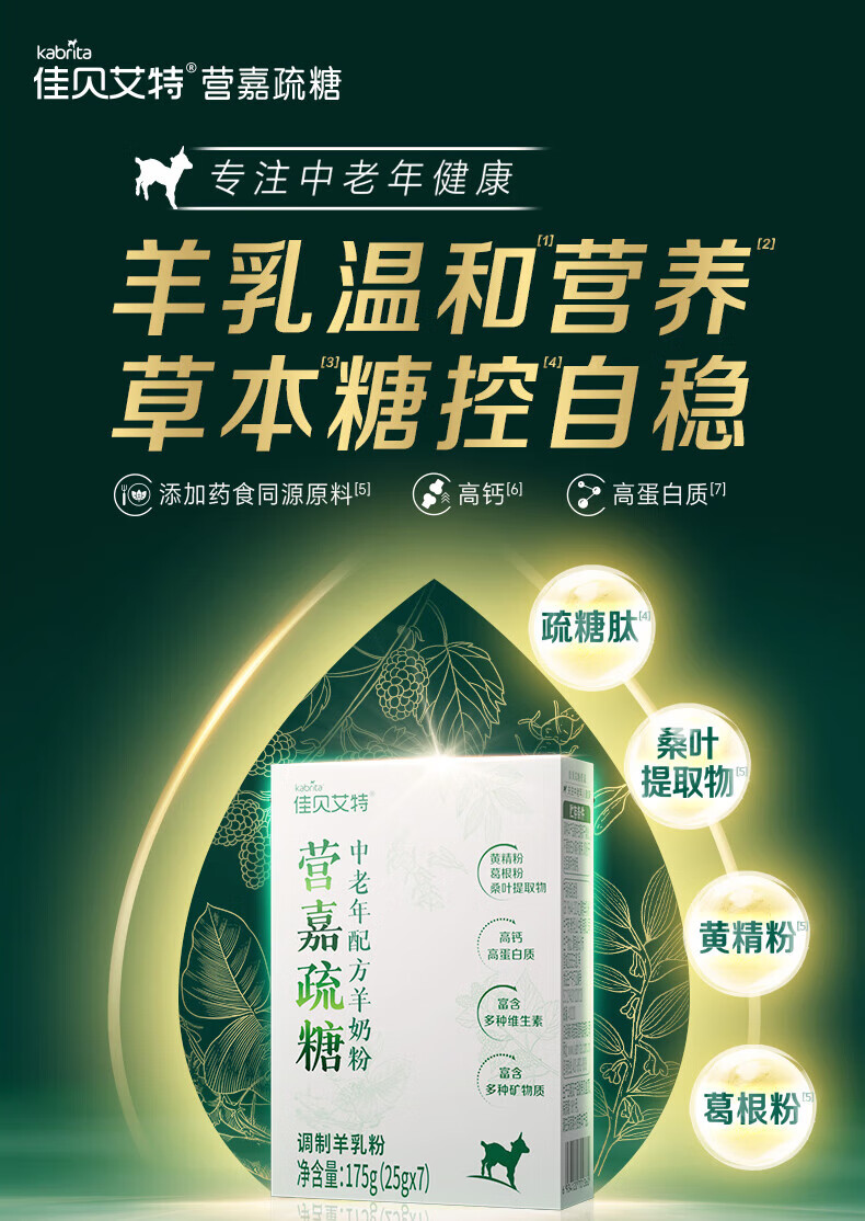 佳贝艾特(Kabrita)中老年羊奶粉 0蔗糖 成人奶粉中老年送礼 草本糖控疏糖 175g盒装 【新日期25年8月】175g*2盒