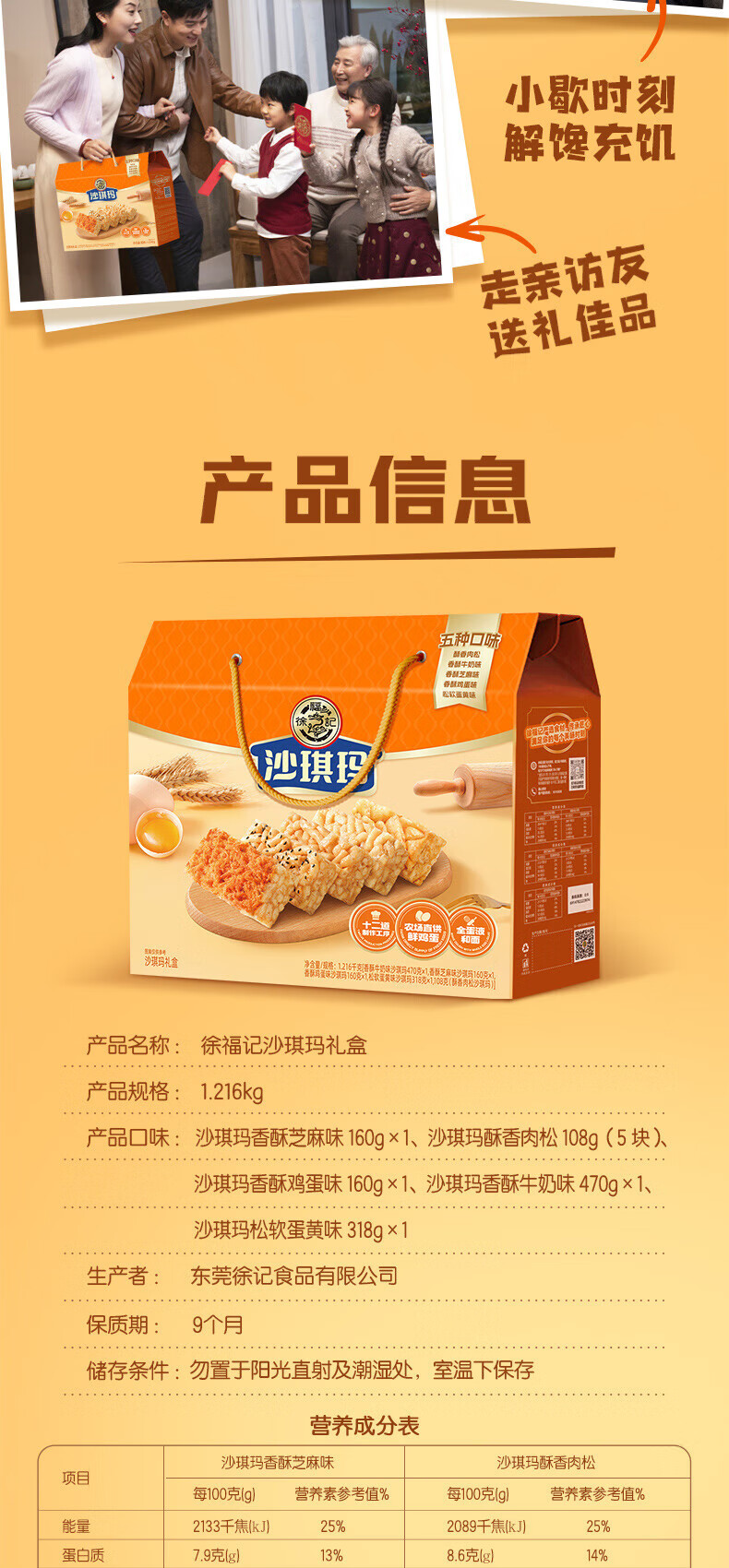 徐福记沙琪玛混合口味礼箱1.216kg京东自营