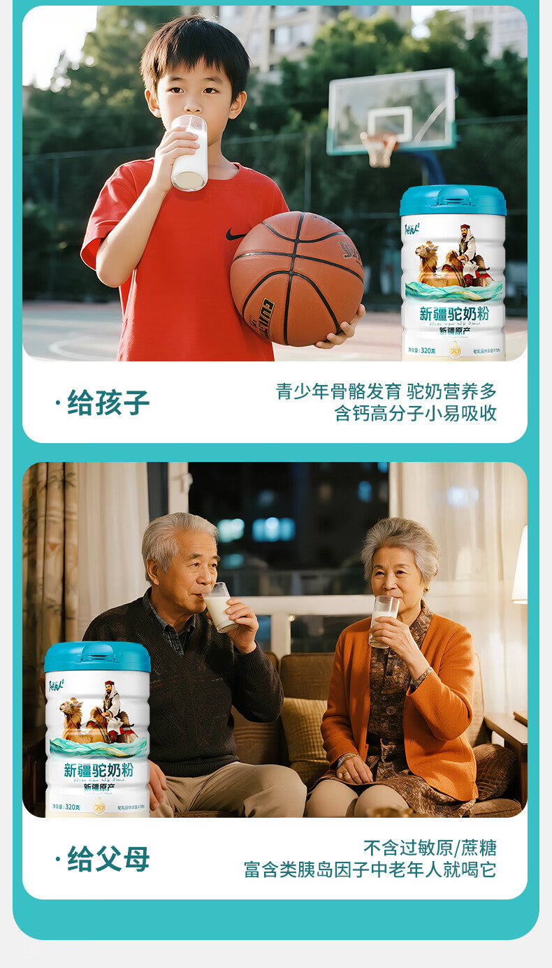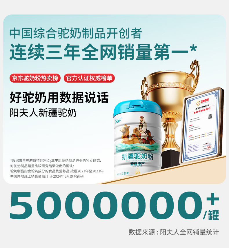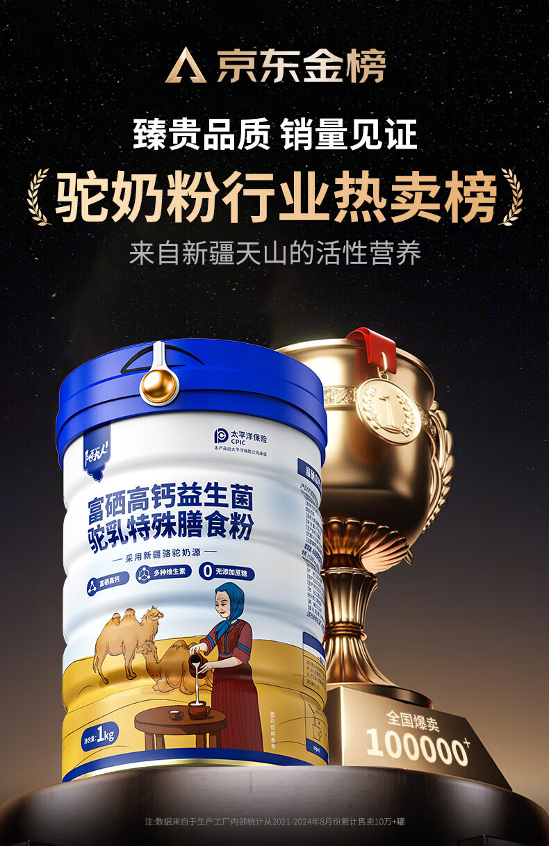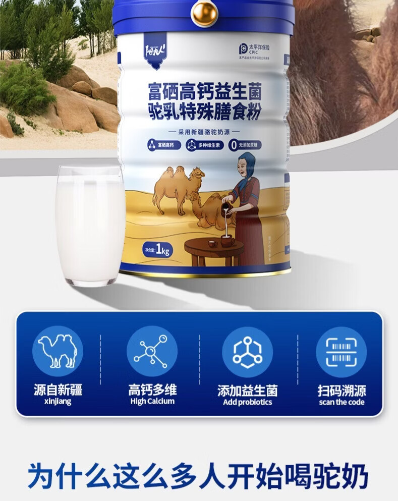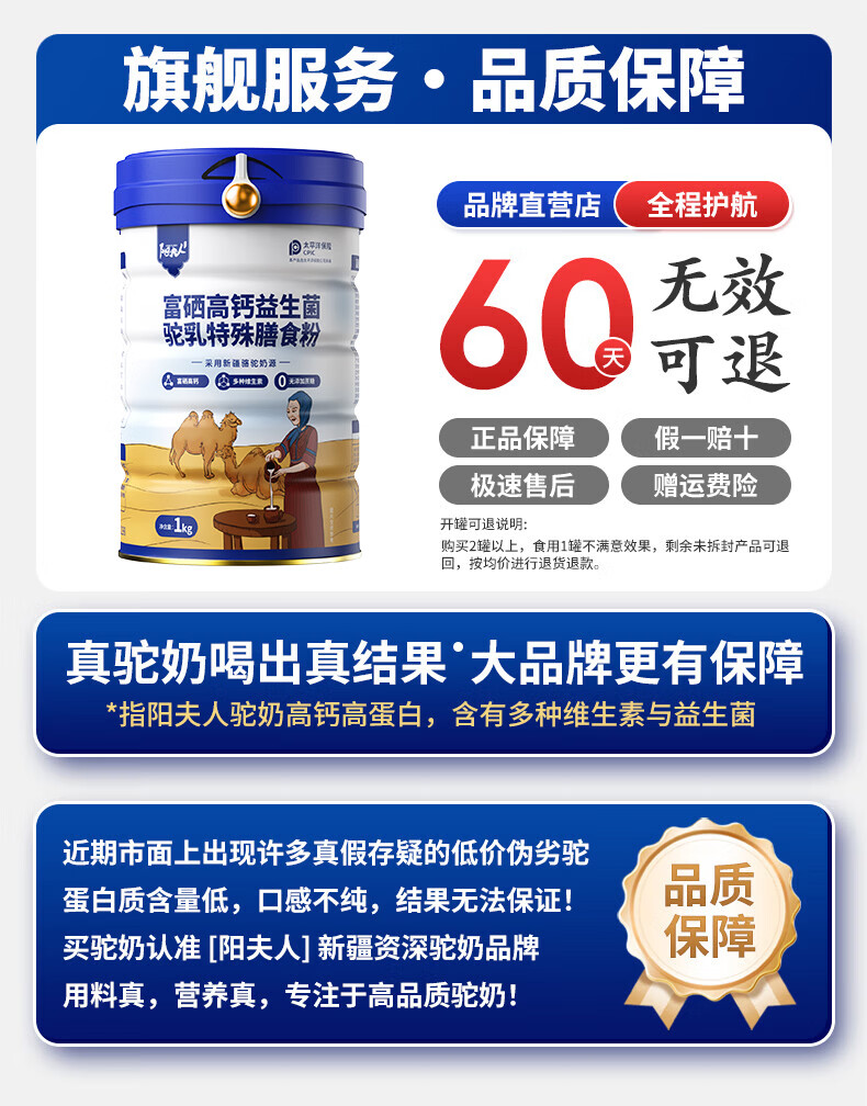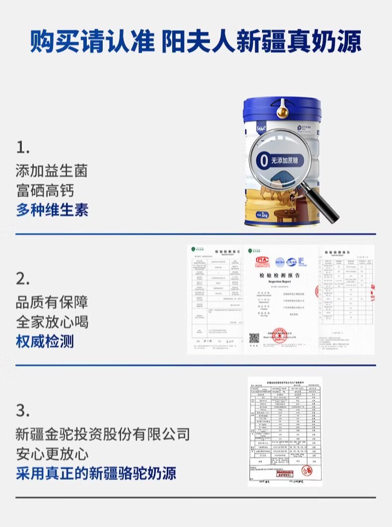阳夫人骆驼奶粉新疆正品糖尿病可用无蔗糖中老年人儿童高钙益生菌纯驼乳 【升级款丨0蔗糖】1KG*1罐