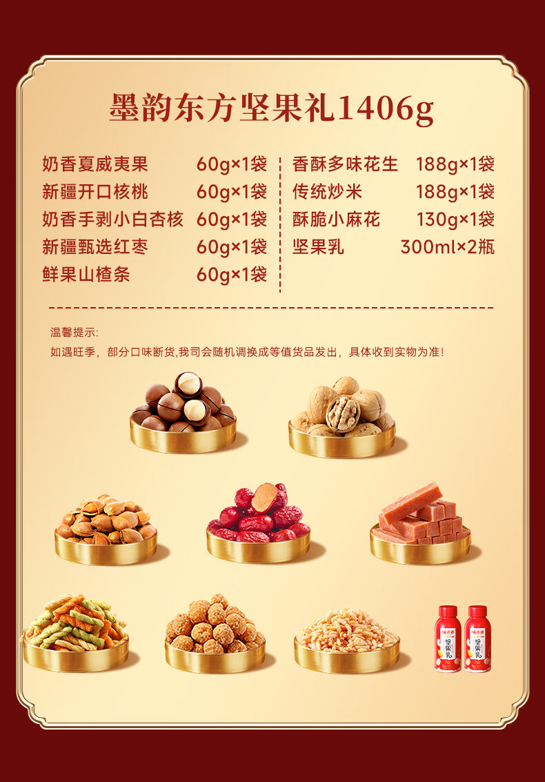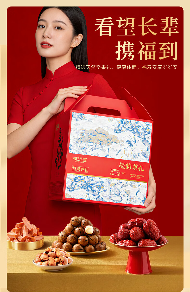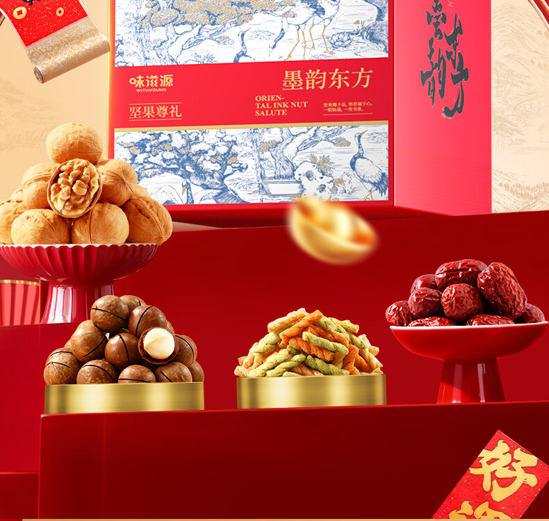 味滋源年货礼盒坚果礼盒坚果炒货零食大礼包夏威夷果每日坚果过年送礼d 1406g坚果礼盒/10件3坚果