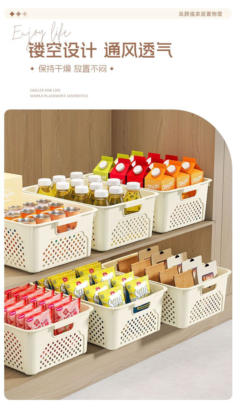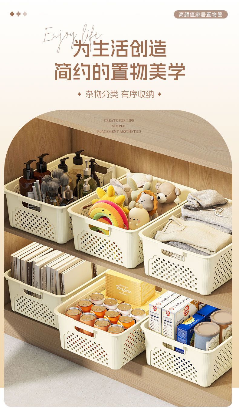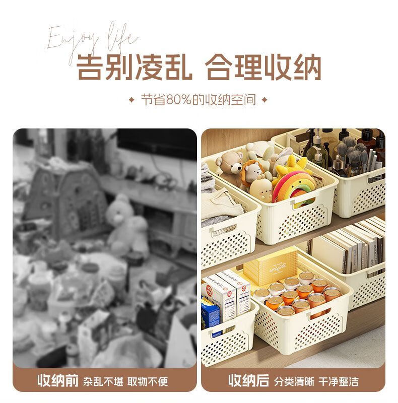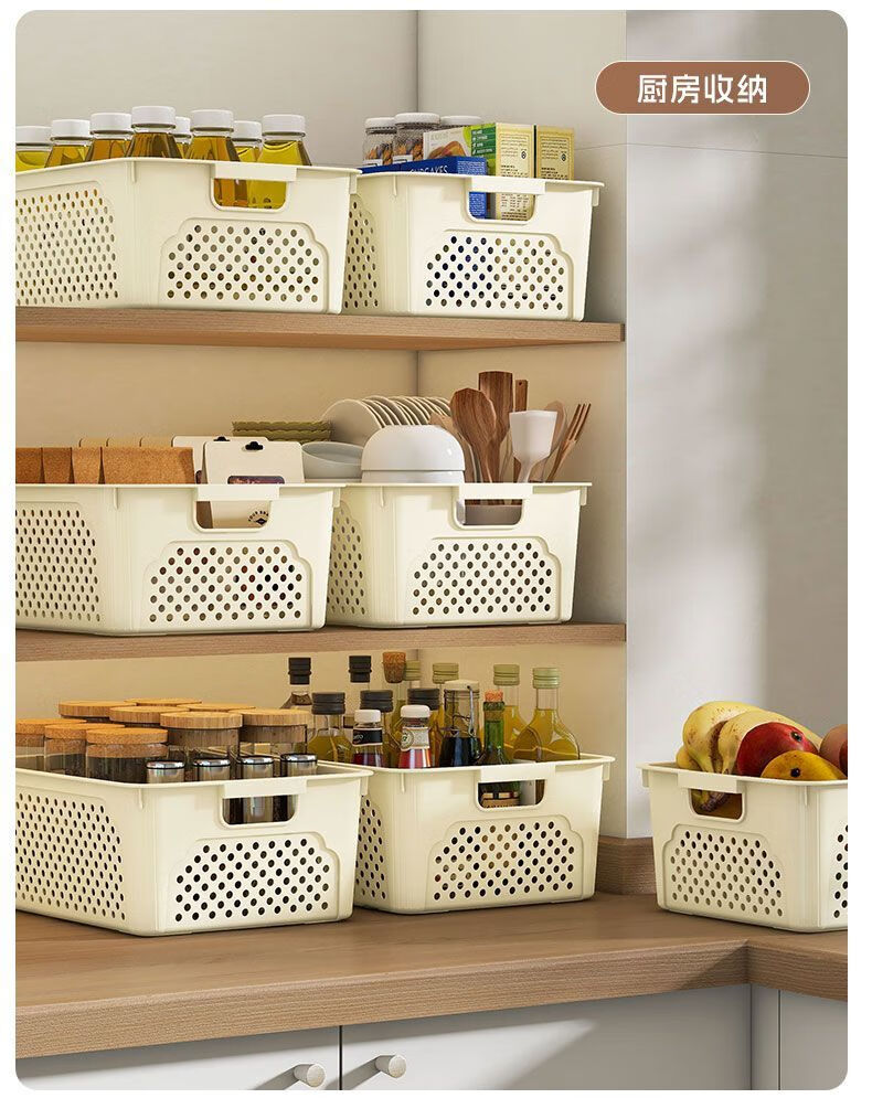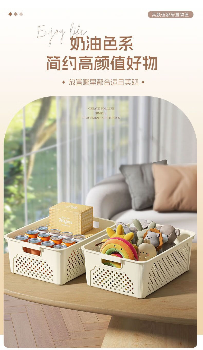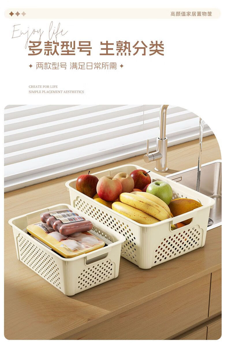 京东物流 桌面长方形收纳筐厨房杂物家用收纳盒塑料玩具零食整理 奶油色特大号 34*24*12.5cm