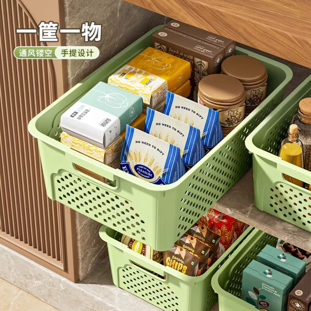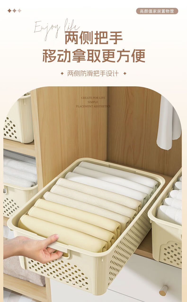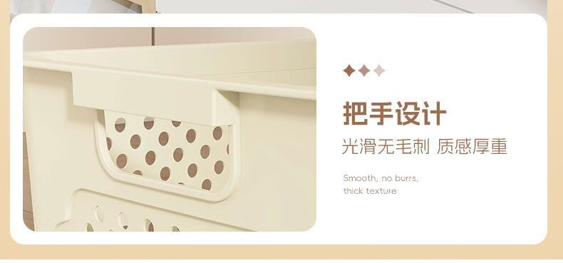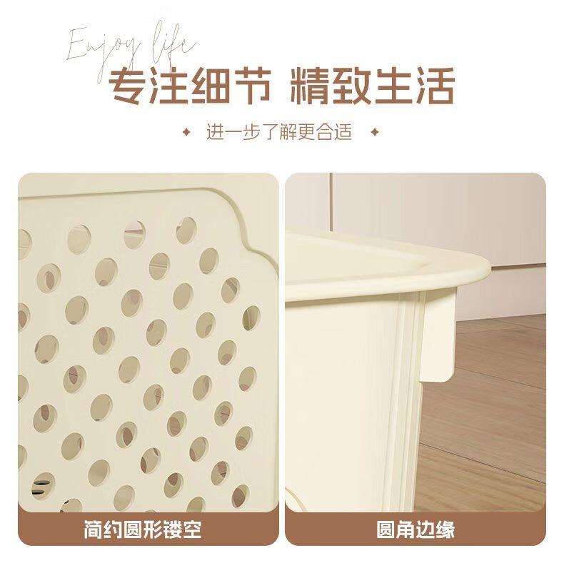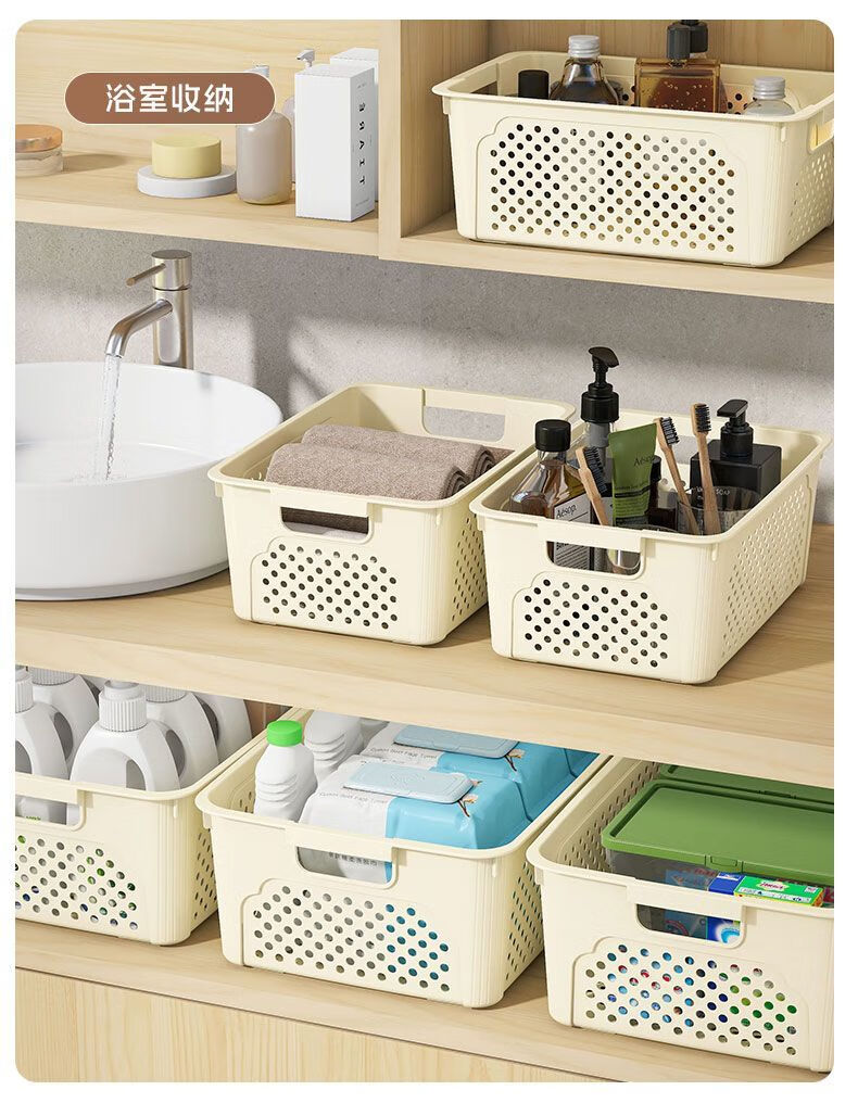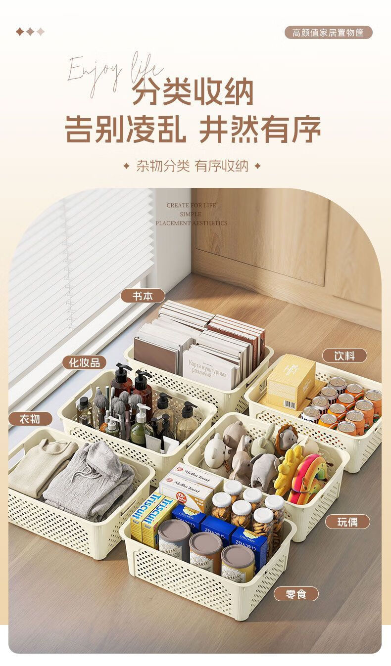 京东物流 桌面长方形收纳筐厨房杂物家用收纳盒塑料玩具零食整理 奶油色特大号 34*24*12.5cm