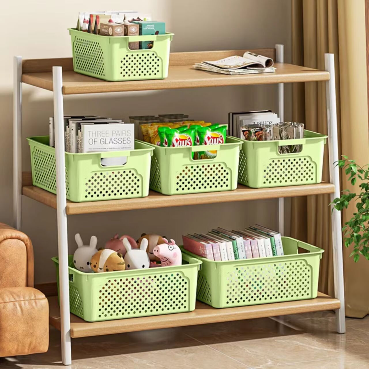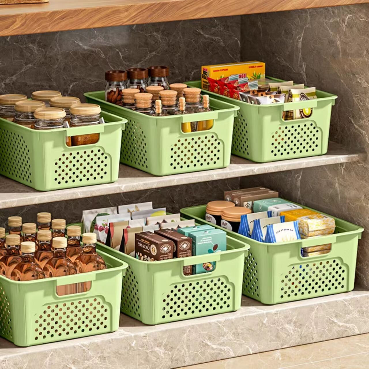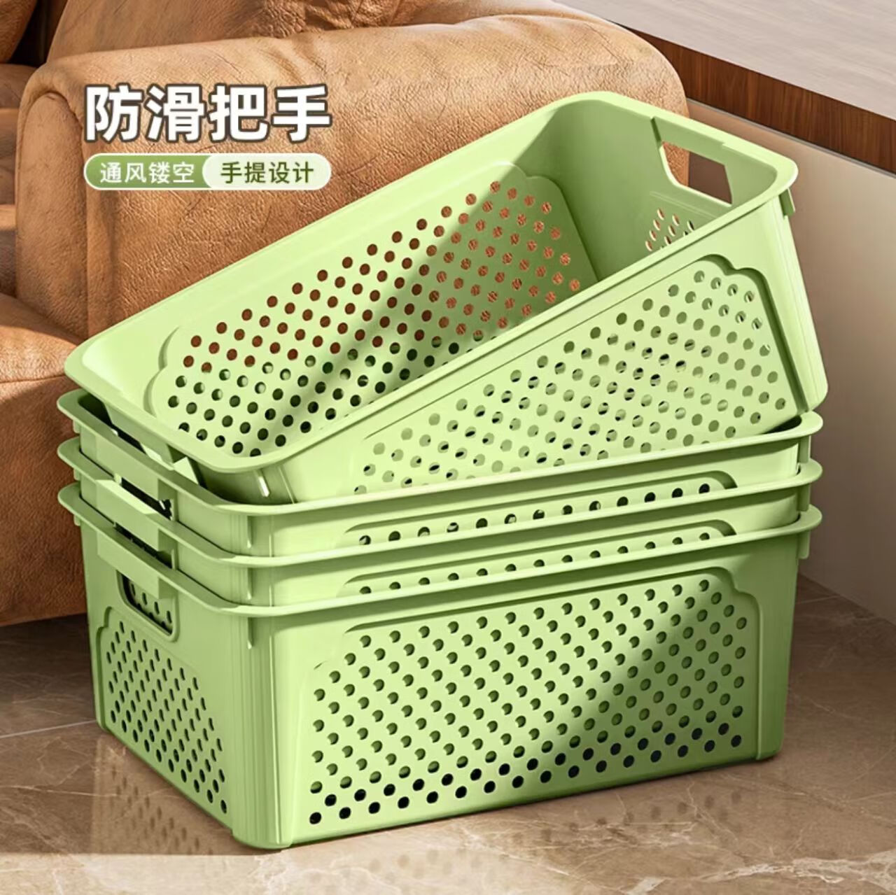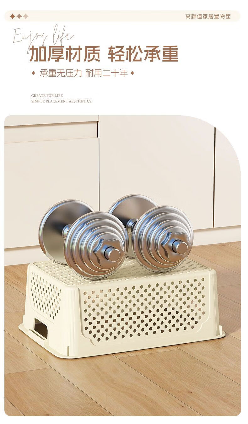 京东物流 桌面长方形收纳筐厨房杂物家用收纳盒塑料玩具零食整理 奶油色特大号 34*24*12.5cm