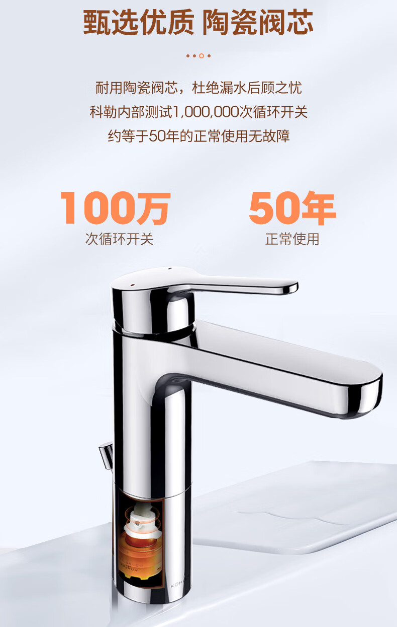科勒(KOHLER)面盆龙头洗脸盆冷热水龙头家用卫生间台盆防溅水洗脸水龙头33089T 单把脸盆龙头33089T