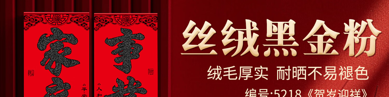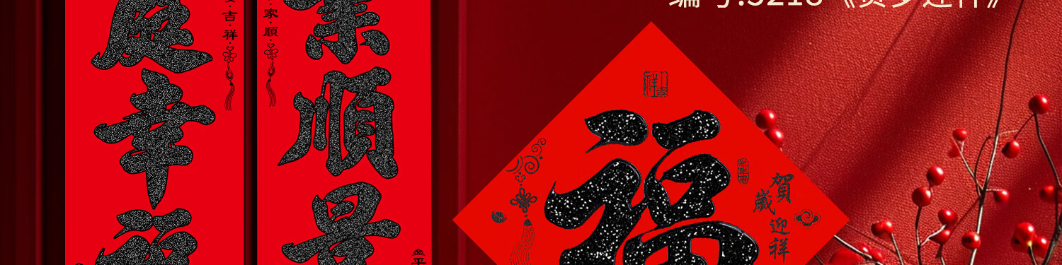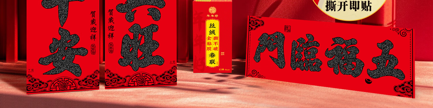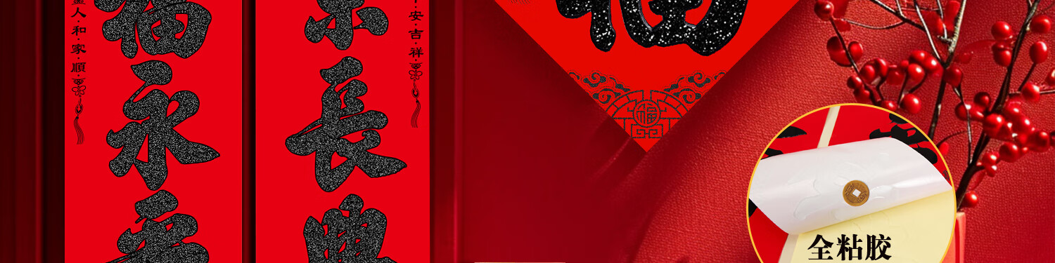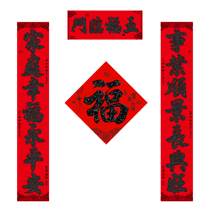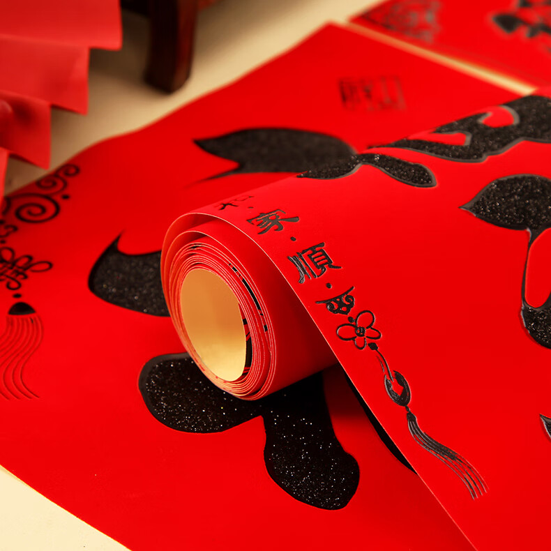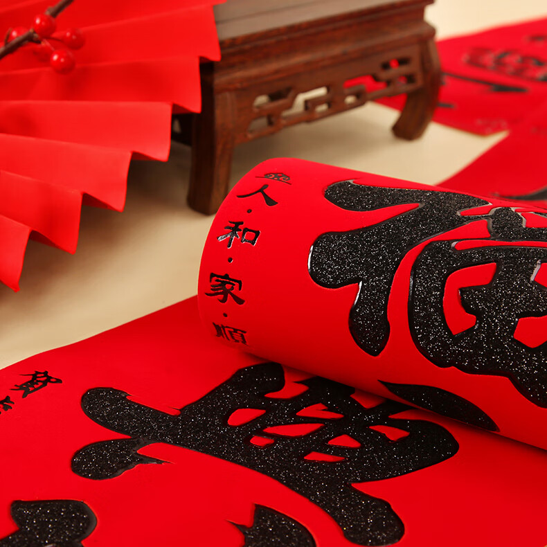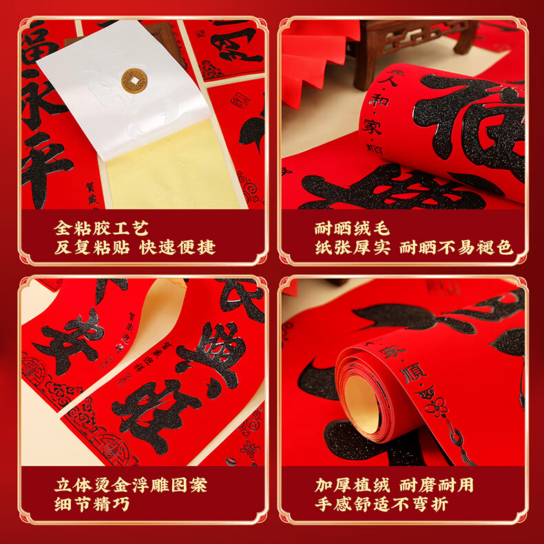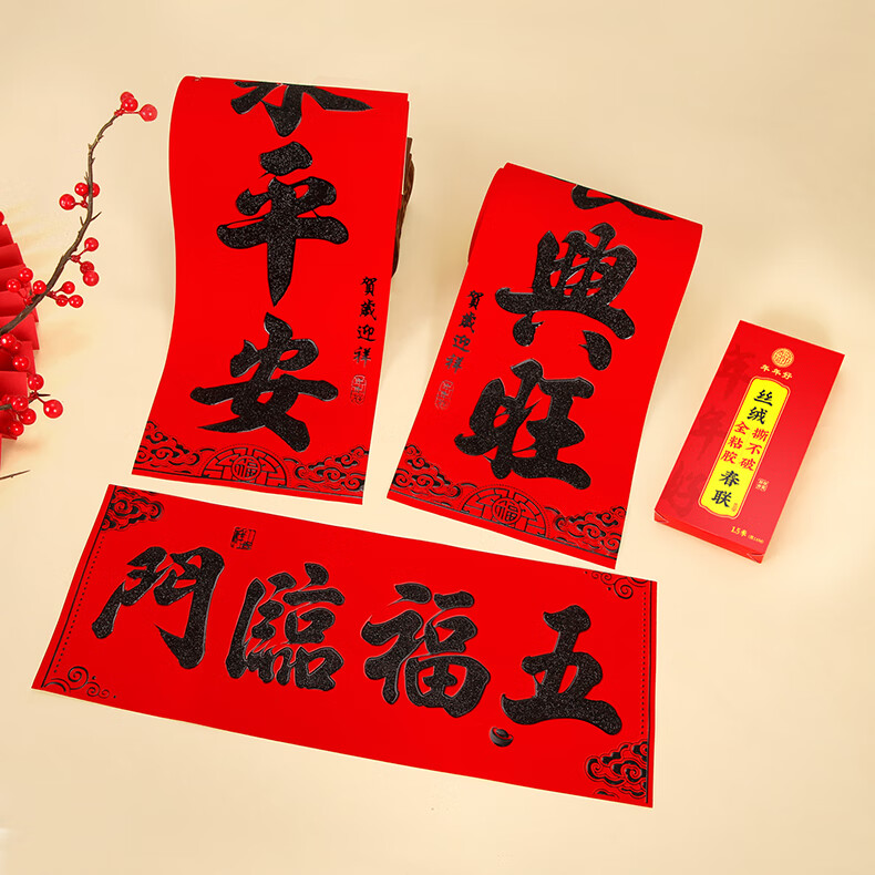 少年伴春联对联礼包2026马年新年礼物大礼包高档丝绒喜迎新春装饰门贴福字套装 1.2m五福临门+福字5218
