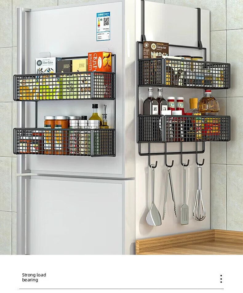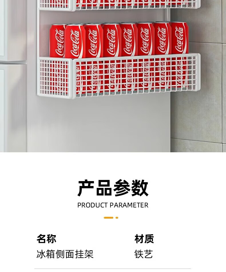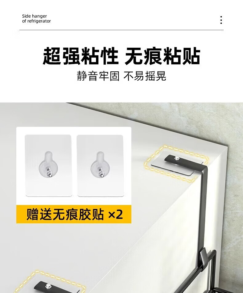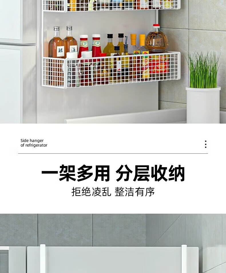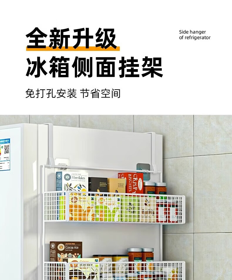 馨婺家冰箱置物架侧面挂架壁挂免打孔厨房用品多功能零食果蔬放菜收纳架 白色单层小号【加厚材质】