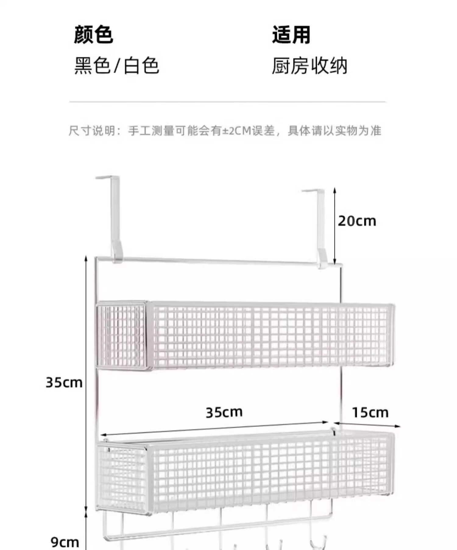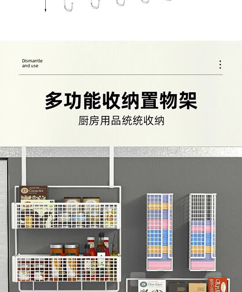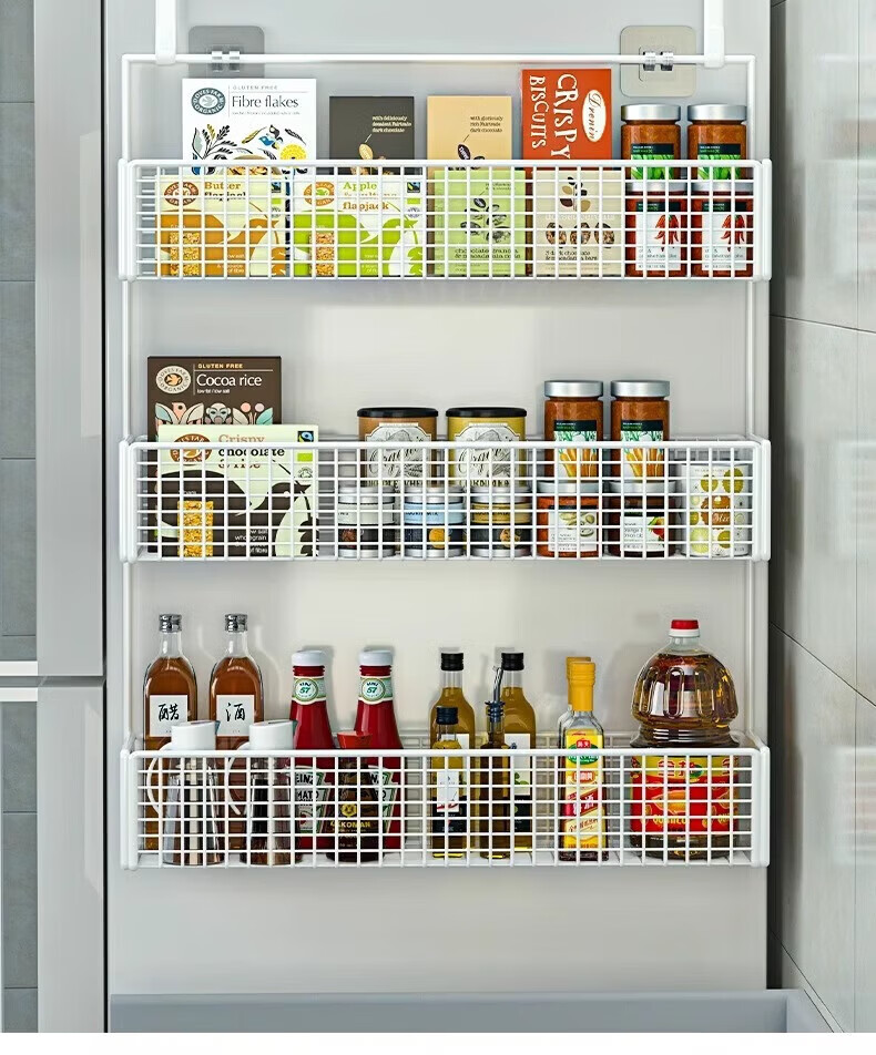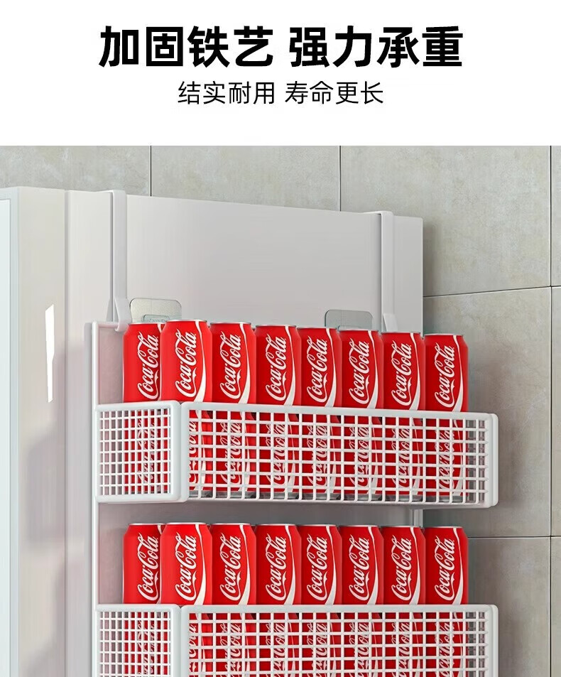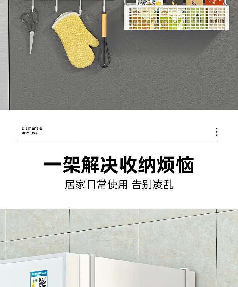 馨婺家冰箱置物架侧面挂架壁挂免打孔厨房用品多功能零食果蔬放菜收纳架 白色单层小号【加厚材质】