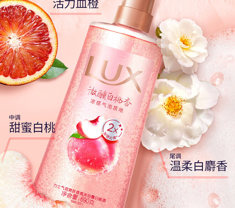 力士(LUX)沐浴露 气泡爽肤香氛沐浴露白桃香690g