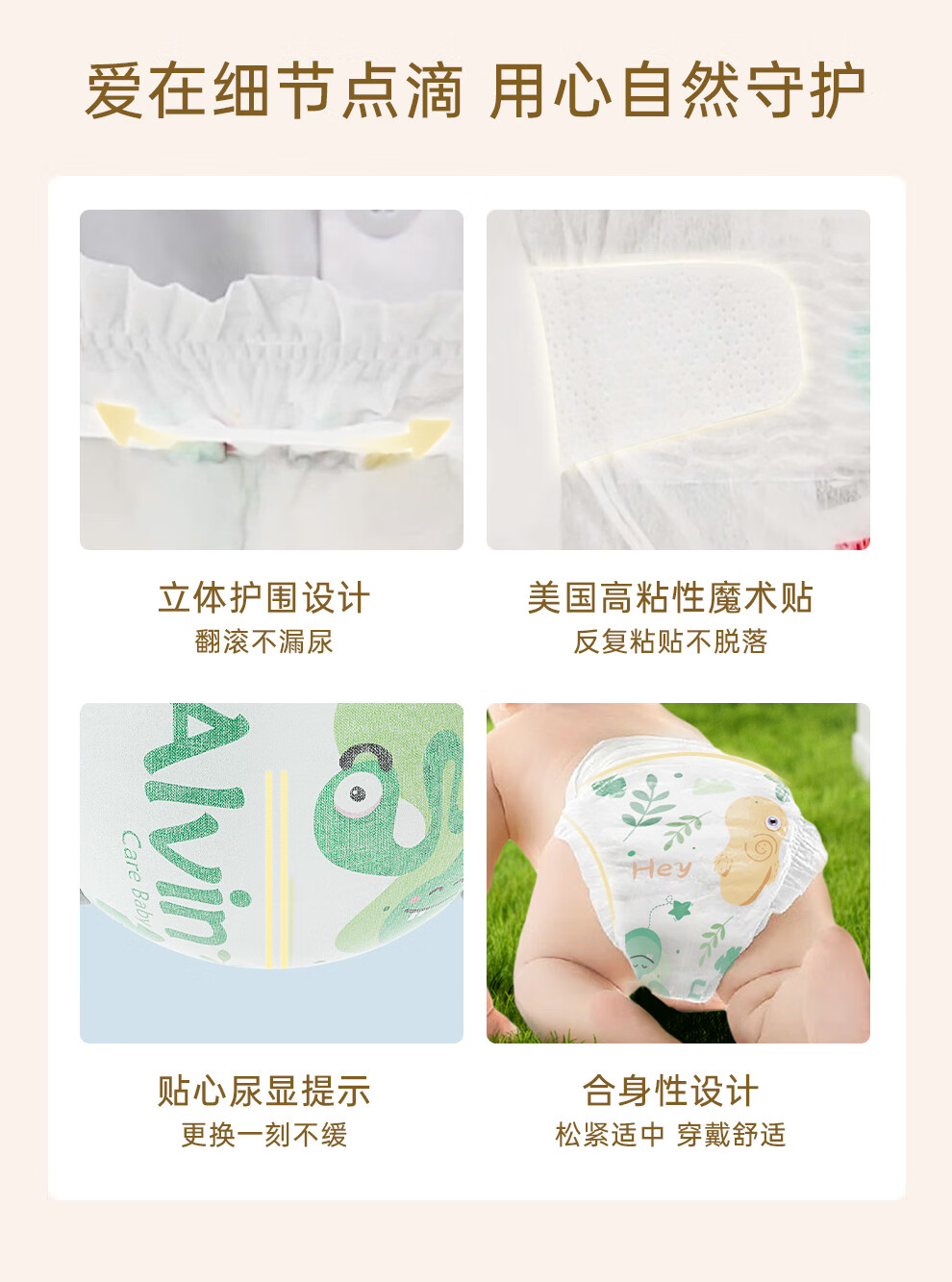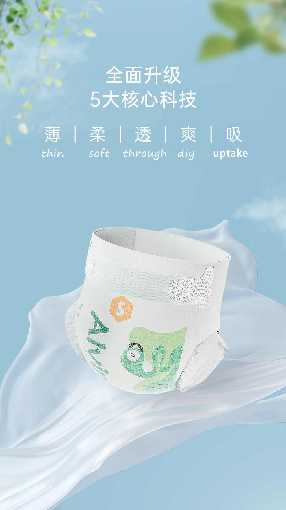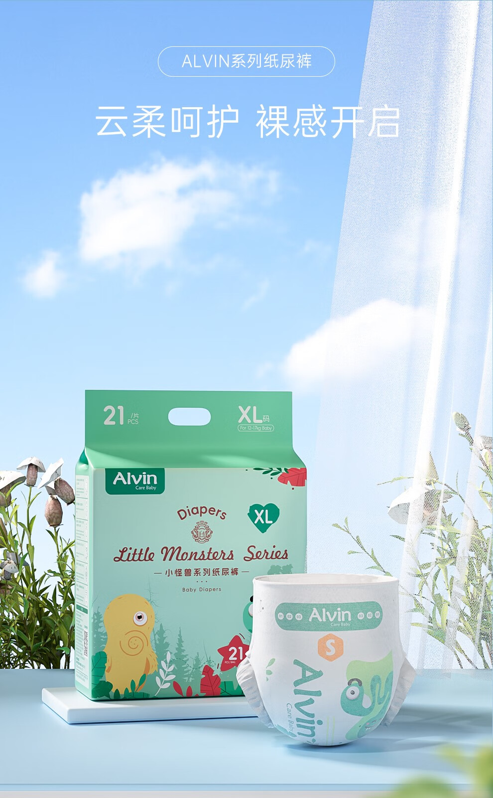 艾薇儿Alvin小怪兽透气裸感纸尿裤L码50片超薄瞬吸干爽尿不湿夜用安睡