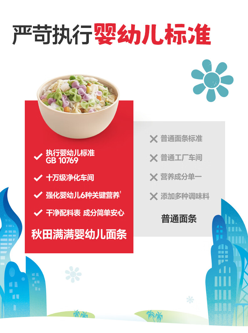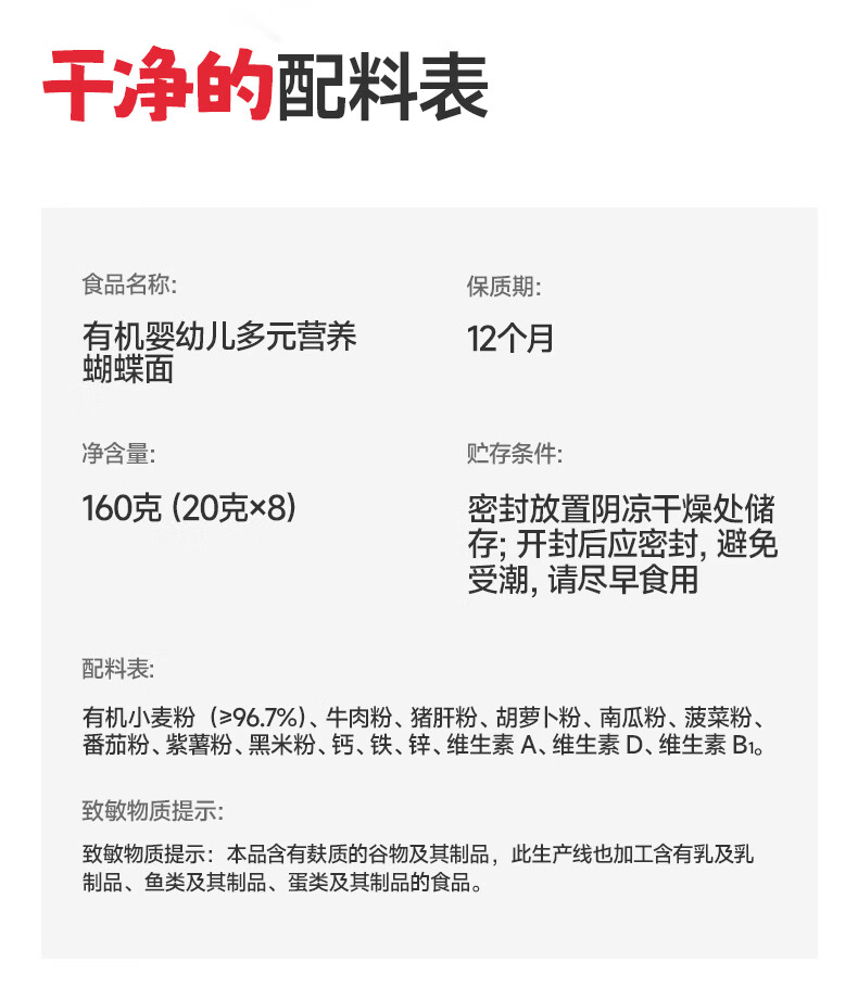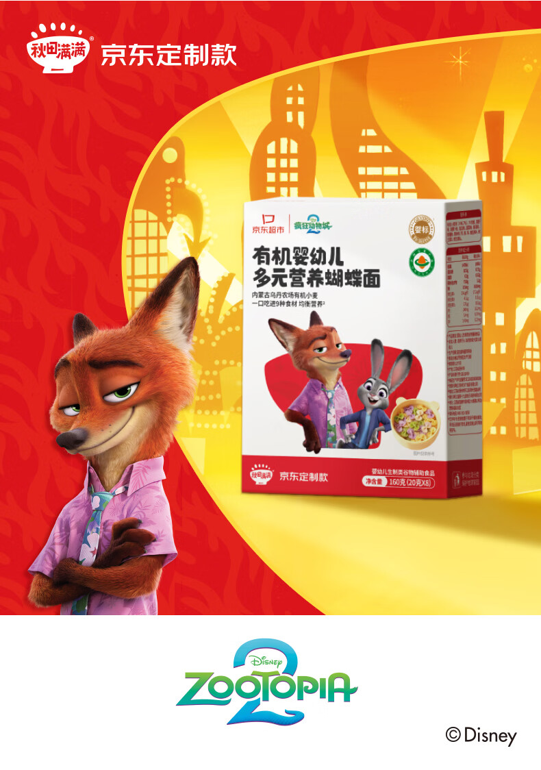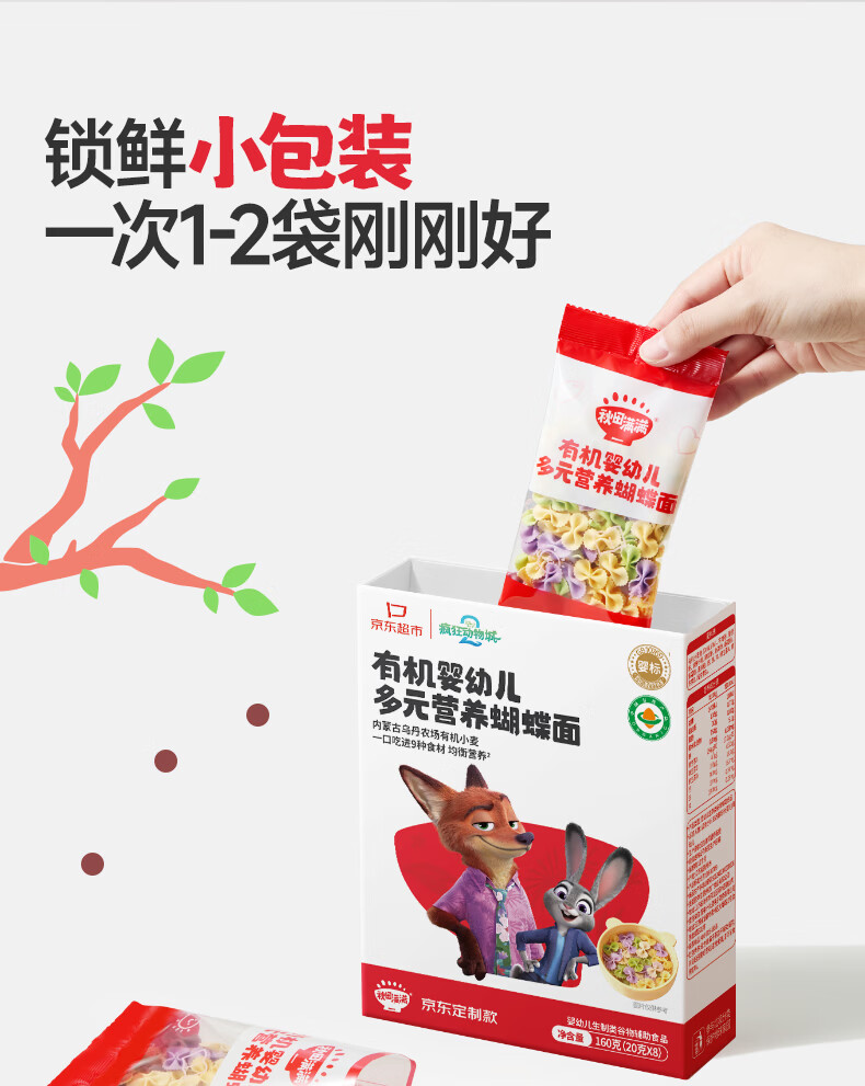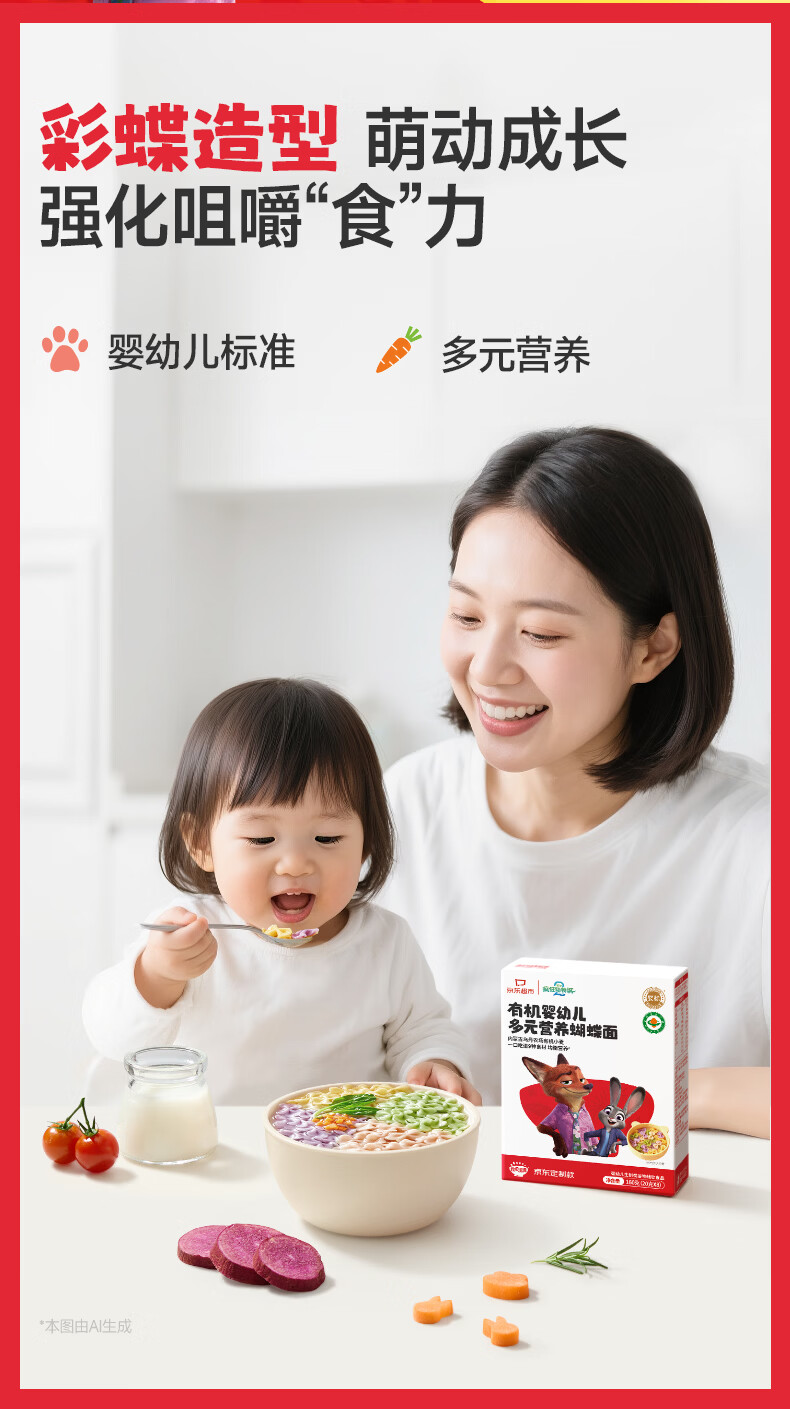 秋田满满 蝴蝶面有机婴儿面条宝宝面条无添加盐 混合果蔬口味 160g