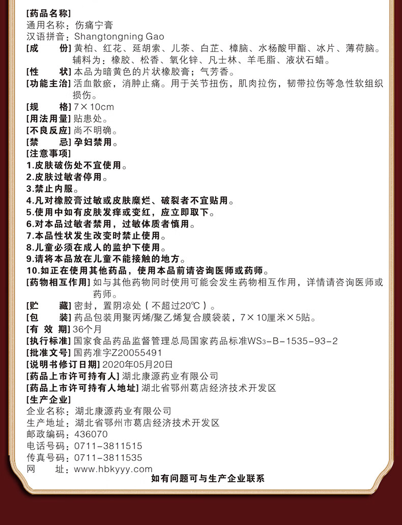 [西山]伤痛宁膏 7cm*10cm*5贴 3盒装 7cm*10cm*5贴活血散淤消肿止痛关节扭伤肌肉拉伤韧带拉伤急性软组织损伤 正品直发