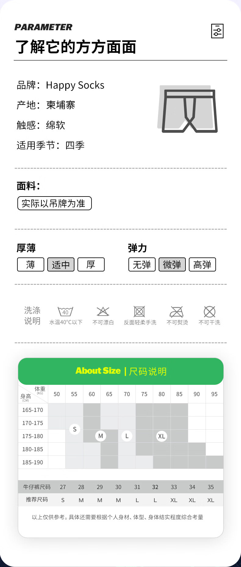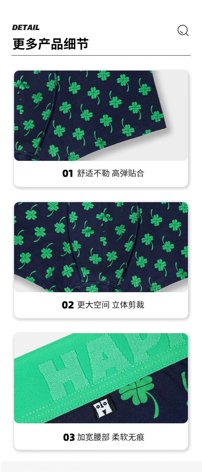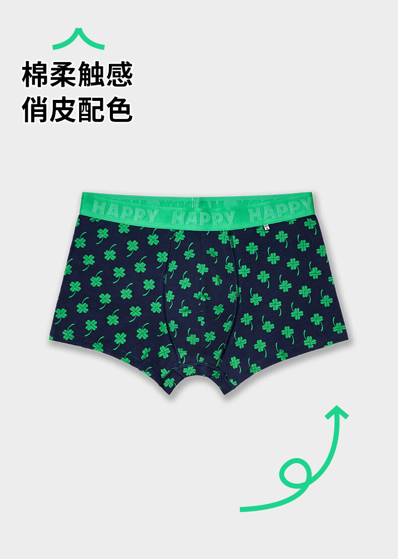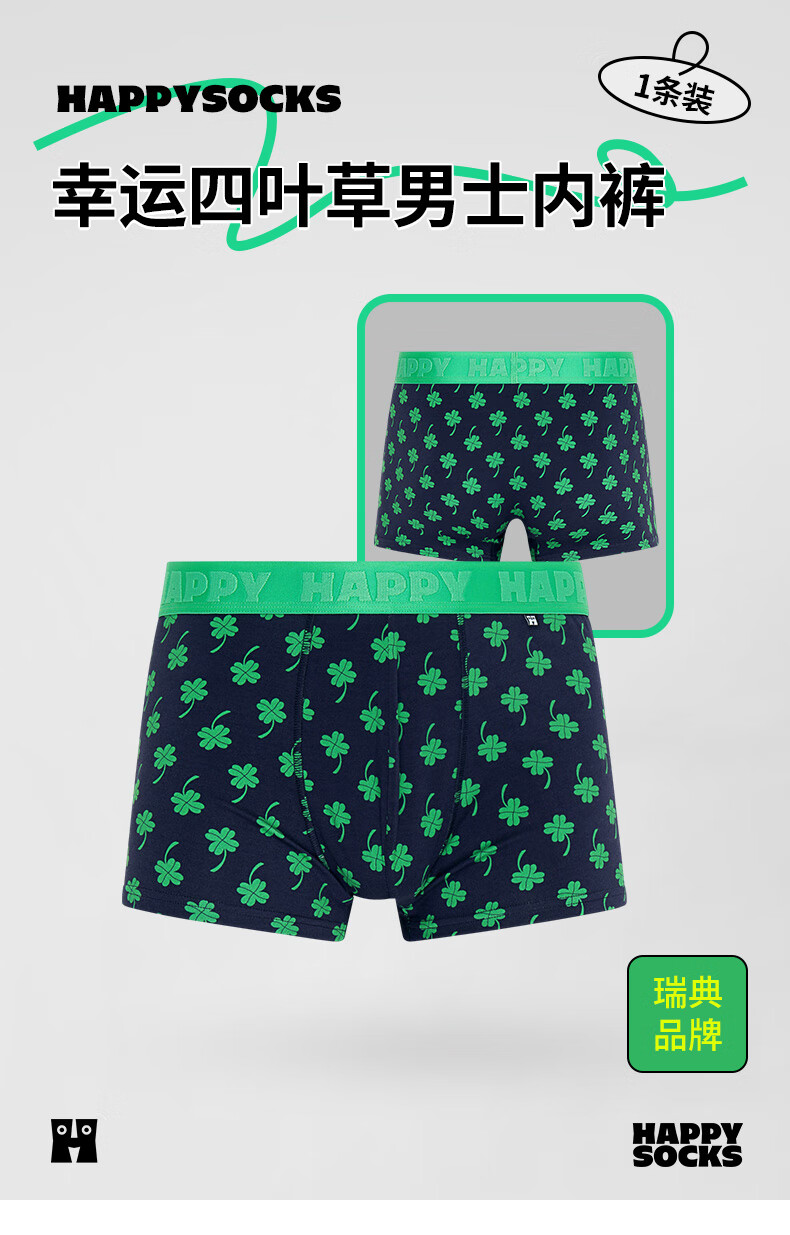 Happy Socks【25年秋冬新品】潮牌ins风多巴胺男士四叶草平角内裤棉 L