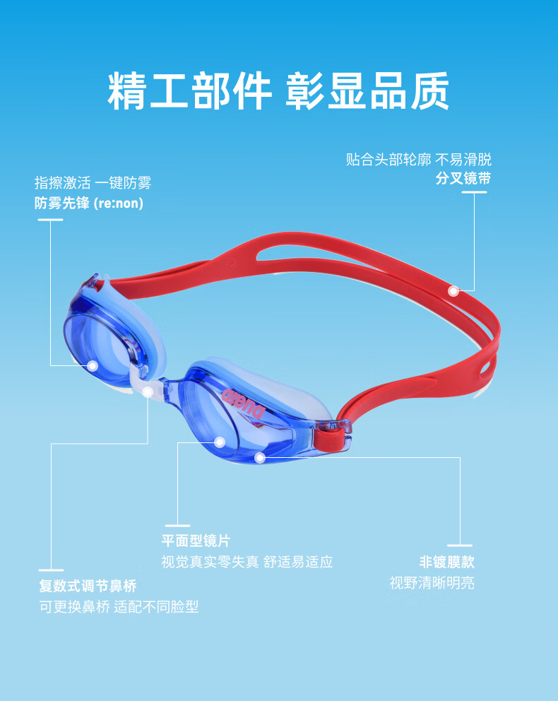 阿瑞娜(arena)泳镜高清防雾游泳镜男女士通用舒适专业大框平光防水游泳眼镜 防雾先锋非镀膜3100黑色(进口)
