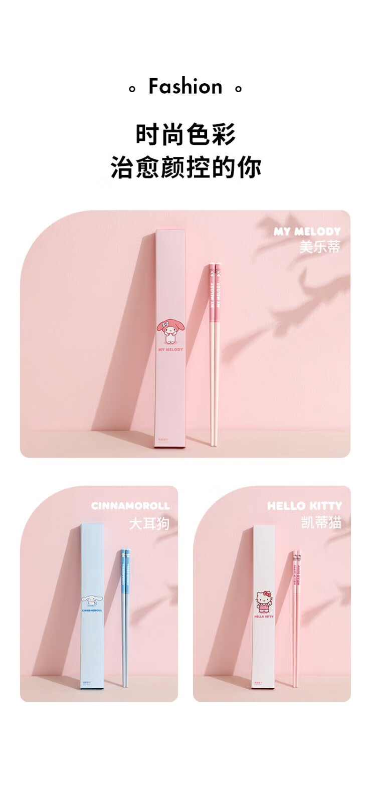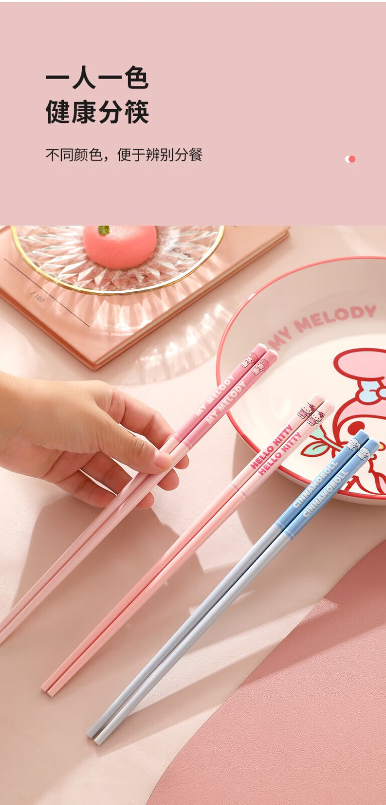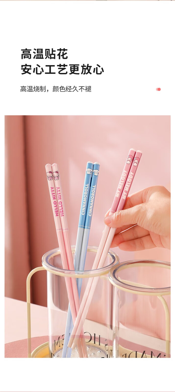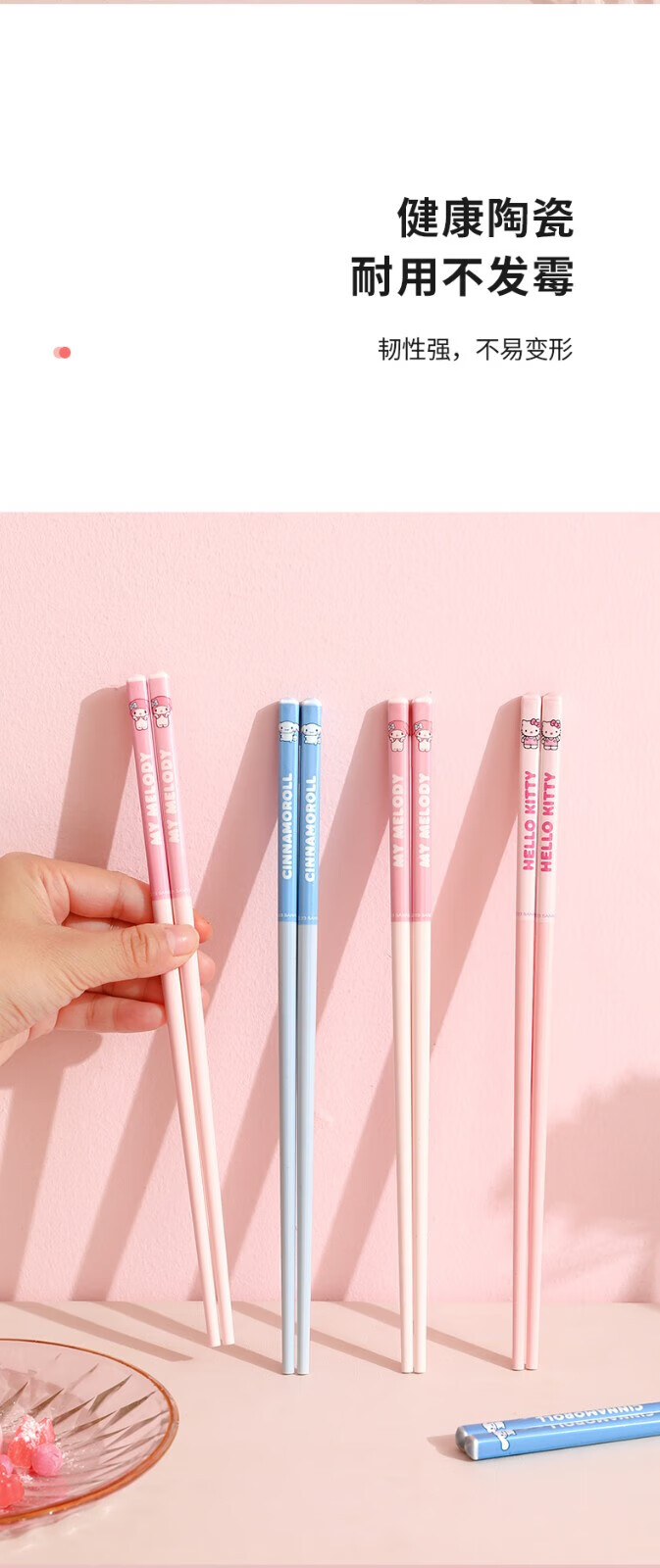 MARSICA筷子一人一筷专用防霉抑菌陶瓷筷家用新款高颜值防滑卡通可爱筷子 【新款四双装】凯蒂猫+美乐蒂+大耳狗+库洛米
