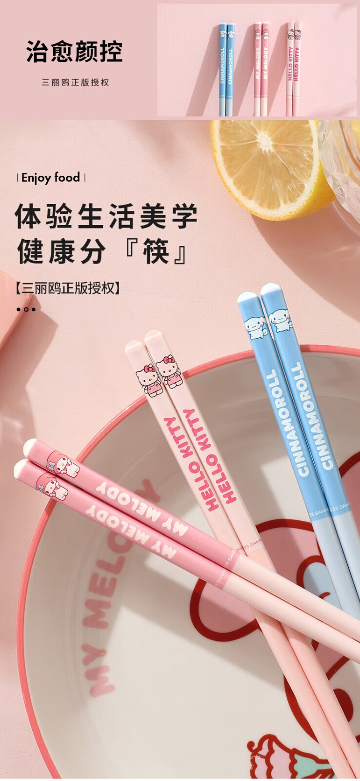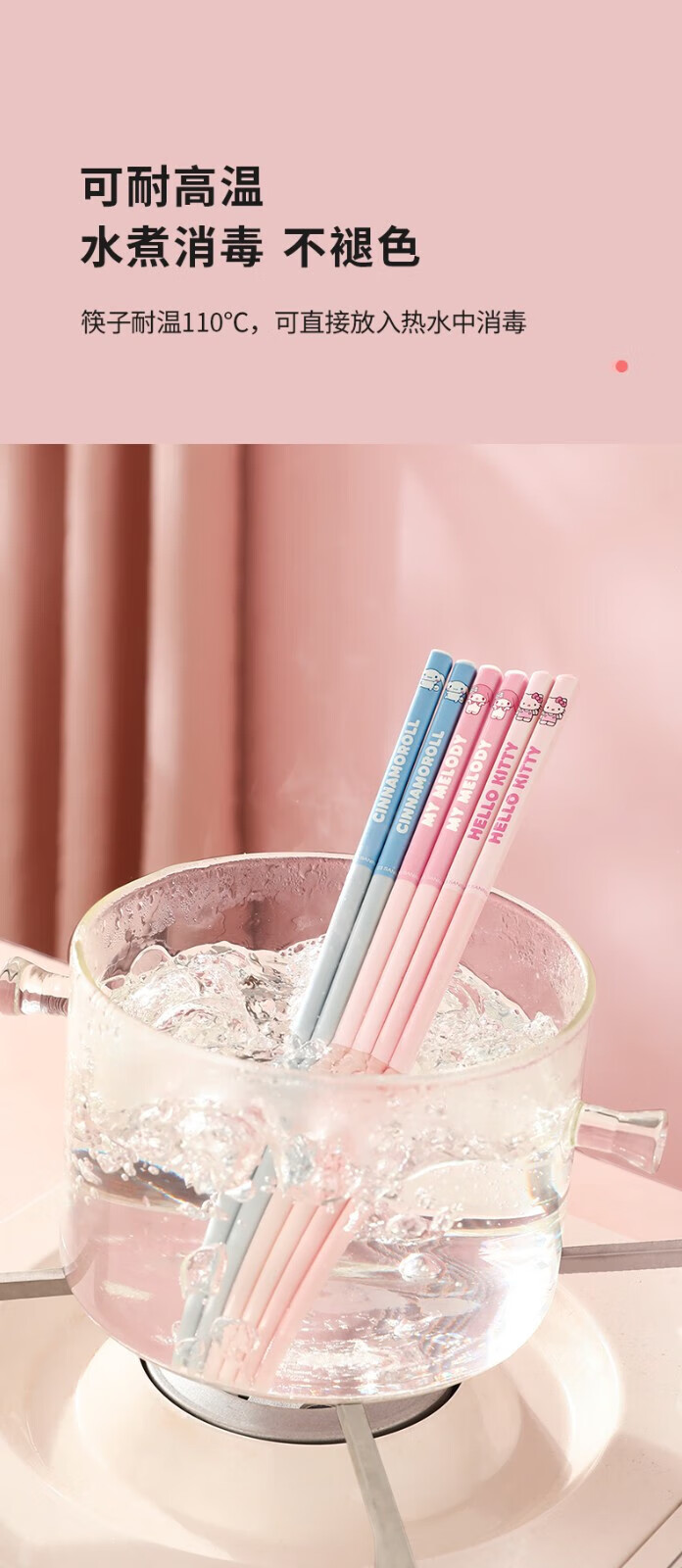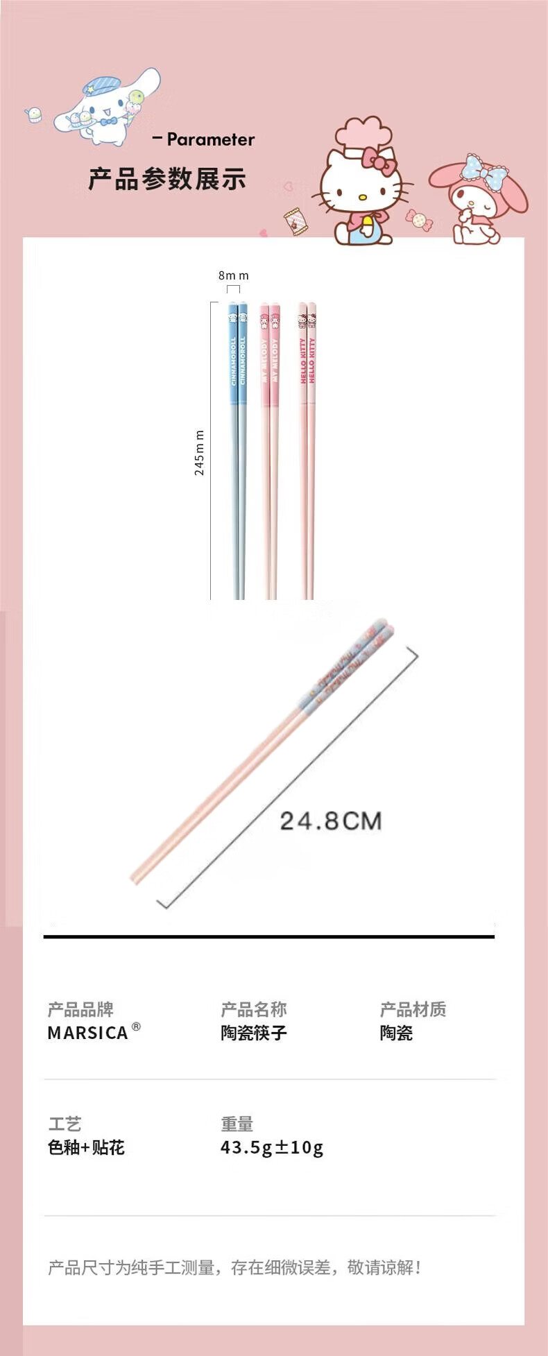 MARSICA筷子一人一筷专用防霉抑菌陶瓷筷家用新款高颜值防滑卡通可爱筷子 【新款四双装】凯蒂猫+美乐蒂+大耳狗+库洛米
