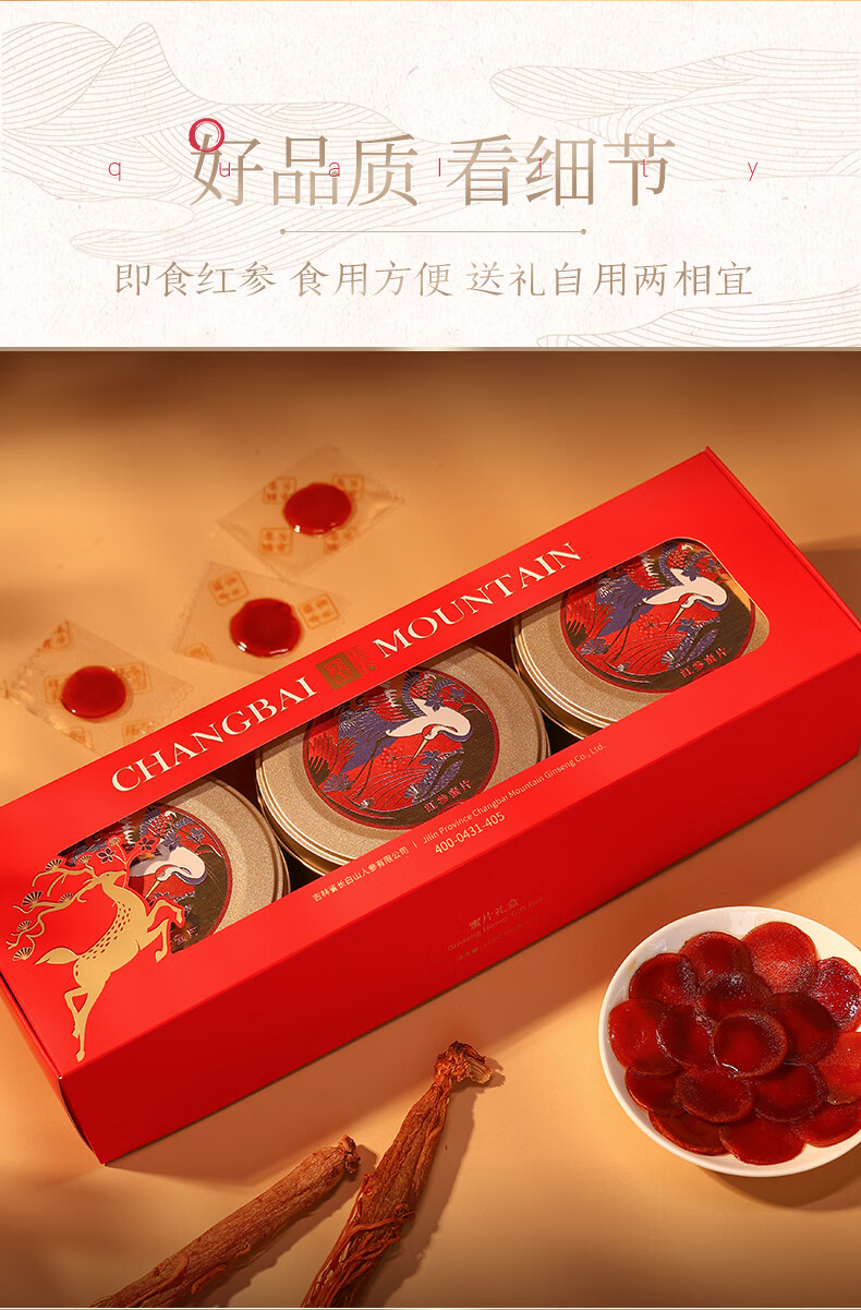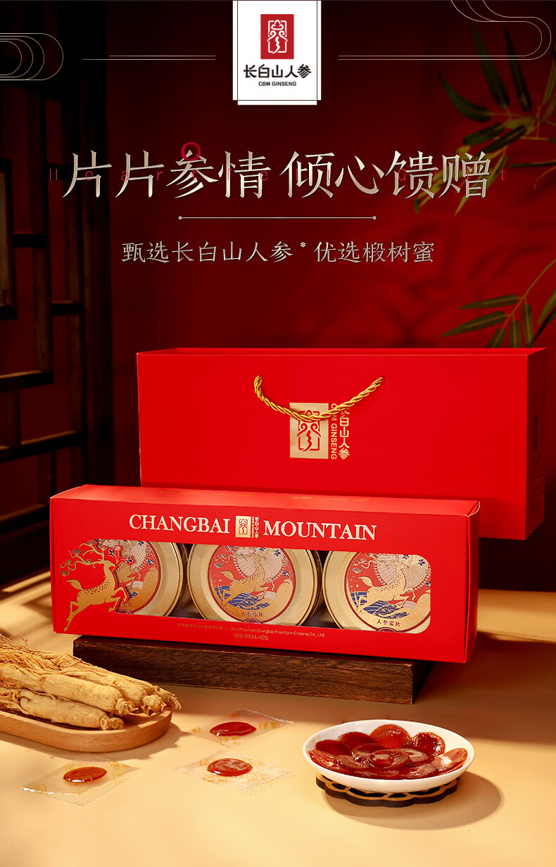 长白山人参人参蜜片礼盒50g/盒*3罐鲜人参即食蜂蜜滋补零食滋补营养过年礼物 人参蜜片 50g*3盒 【送礼袋】