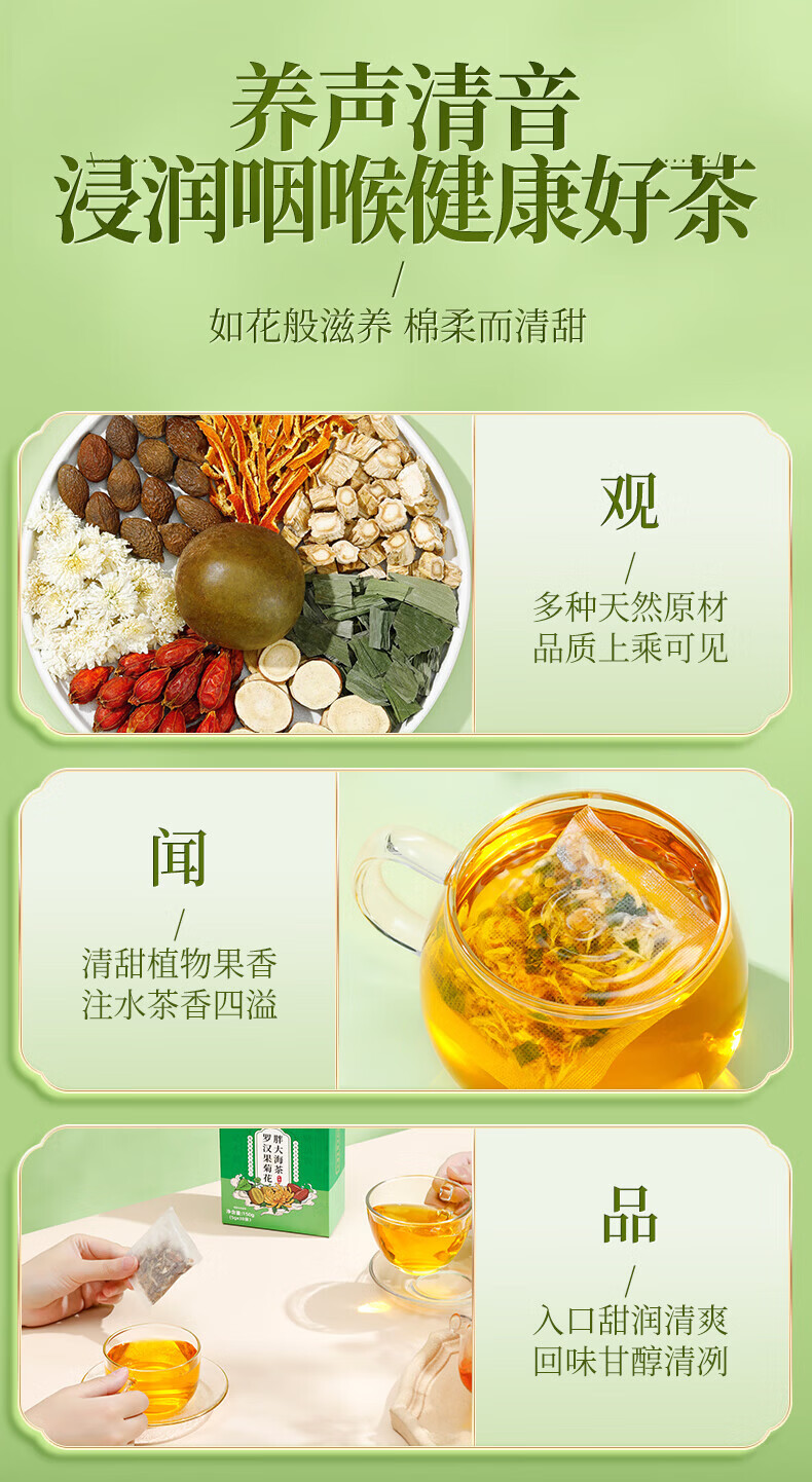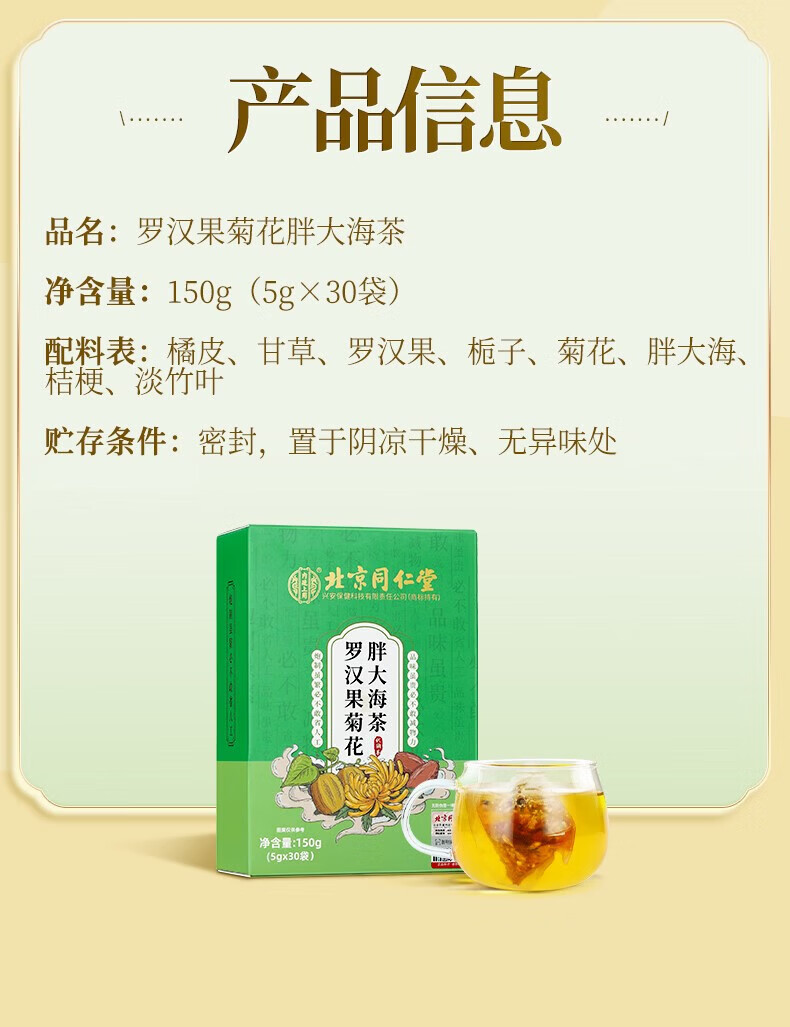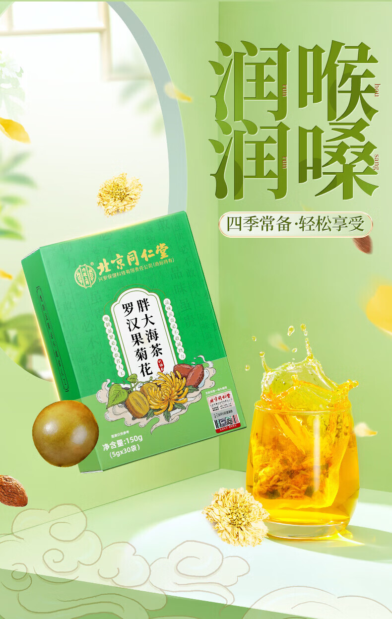 内廷上用北京同仁堂罗汉果菊花胖大海茶辅助清肺化痰润喉养生茶包 【1盒体验装】30袋/盒