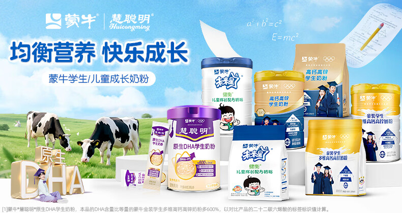 蒙牛慧聪明DHA学生奶粉3岁以上记忆脑力青少年儿童成长牛奶增强正品补 【慧聪明1罐】送金装学生奶1袋+送试喝1条+杯勺发顺丰